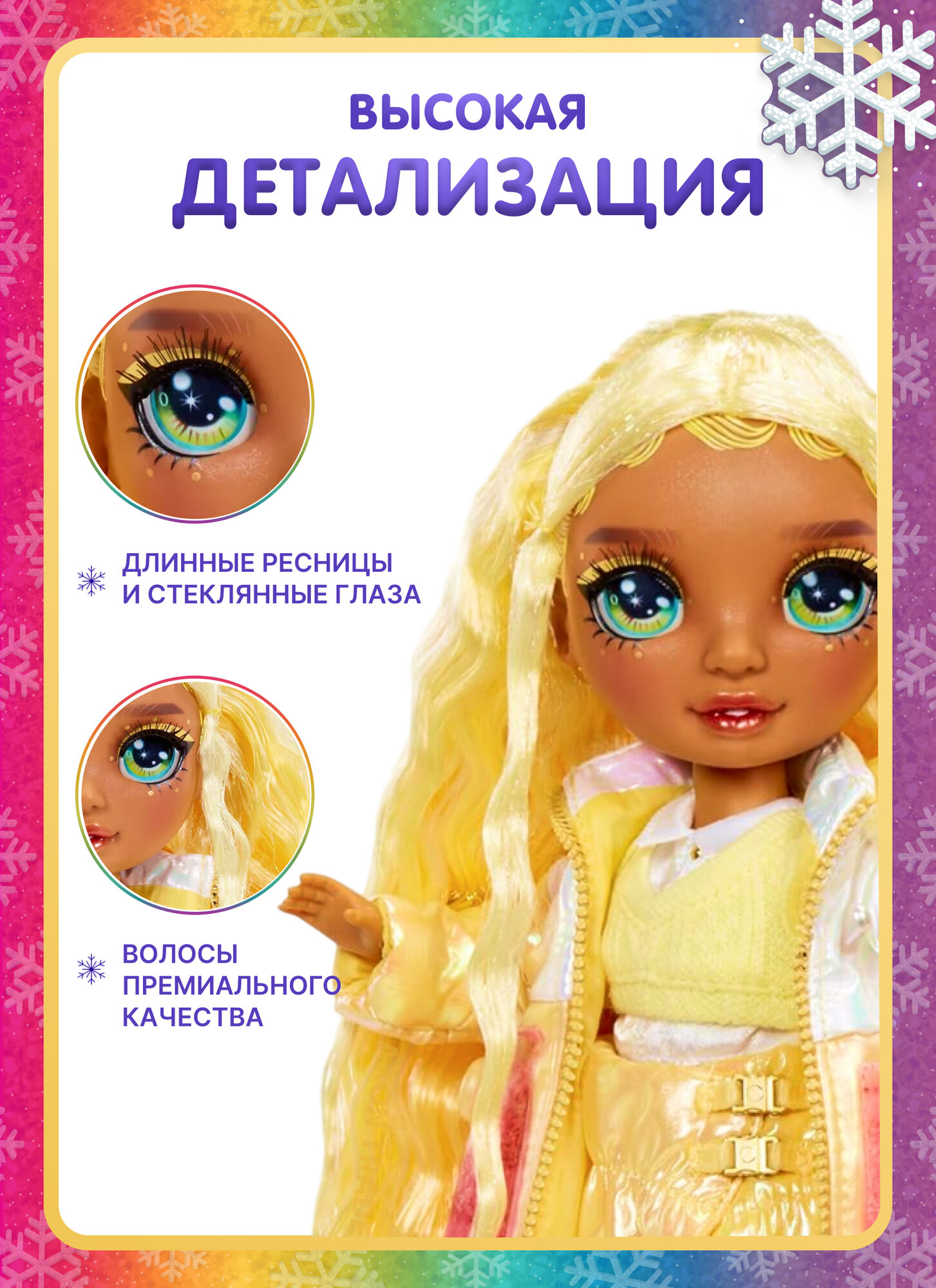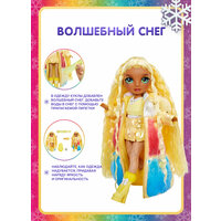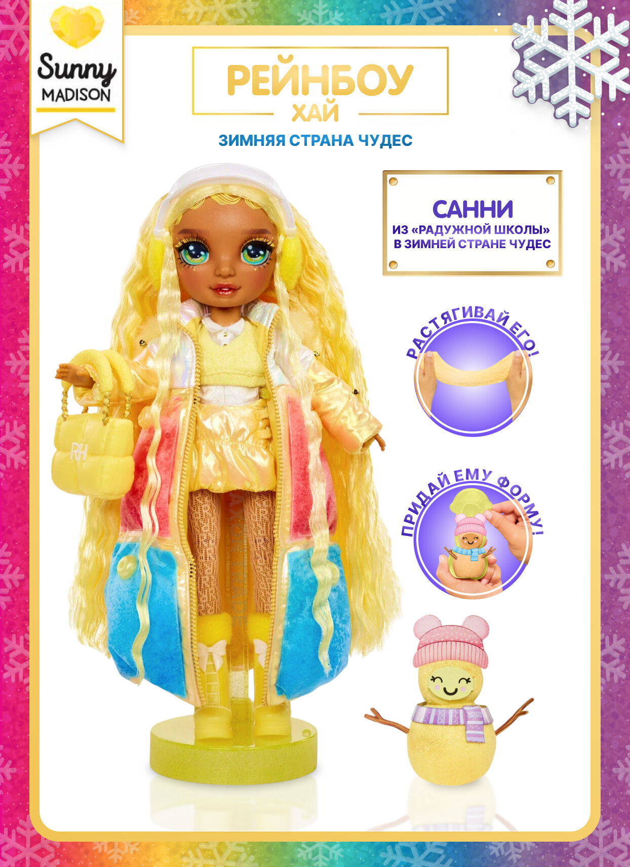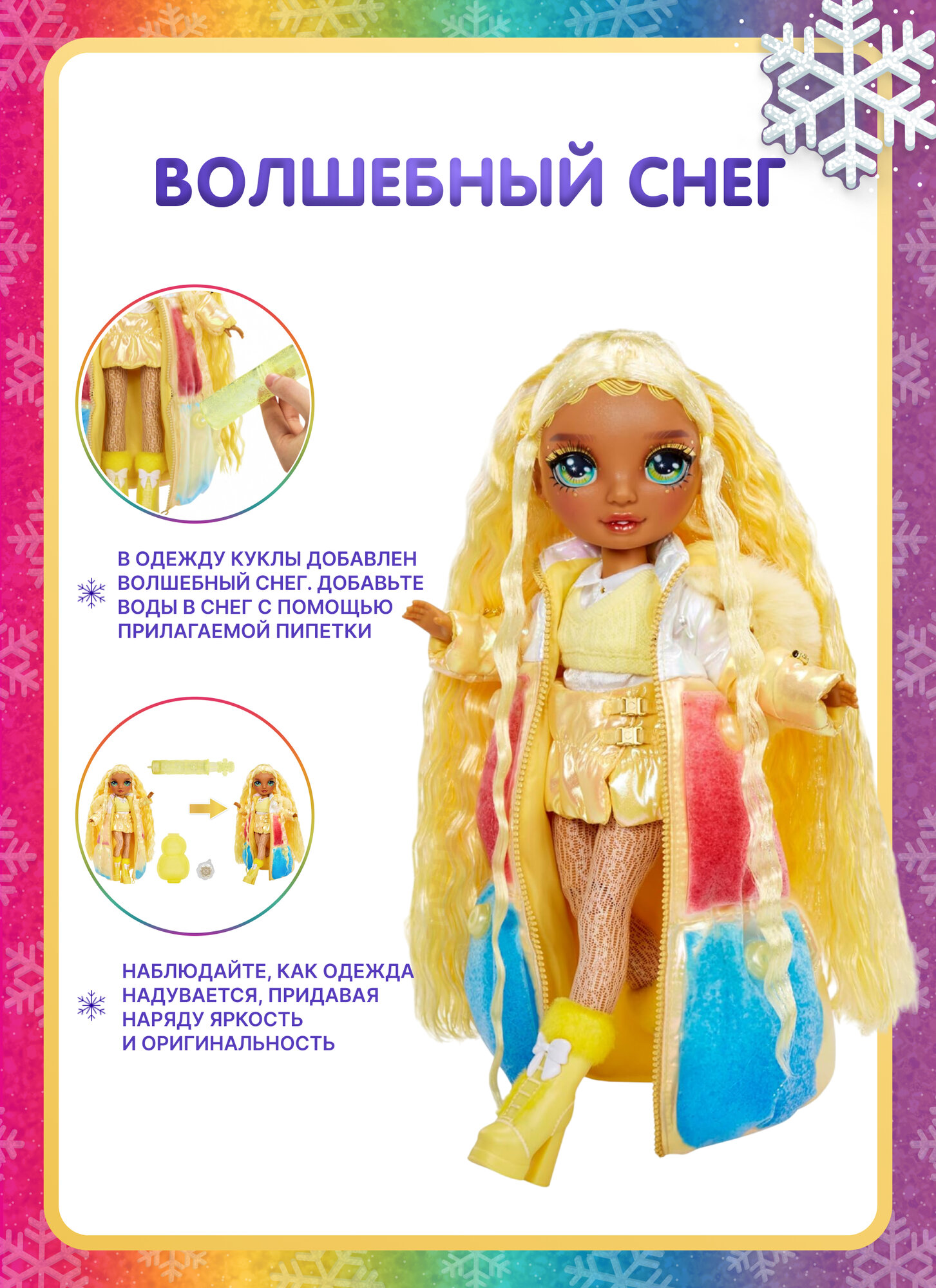 Рейнбоу Хай – это модные куклы премиального качества с детально проработанными аксессуарами. Героини Рейнбоу Хай – творческие личности, показывающие на своем примере, что у каждой девочки есть свой талант, который стоит открыть миру. Приготовьтесь к снегопаду! Снежные наряды модных кукол Winter Wonderland не просто великолепно выглядят, но и еще таят в себе волшебный снег, который преображает облик кукол. Просто добавьте воду в складки платья и наблюдайте, как наряды становятся пышными, а их цвета преображаются.