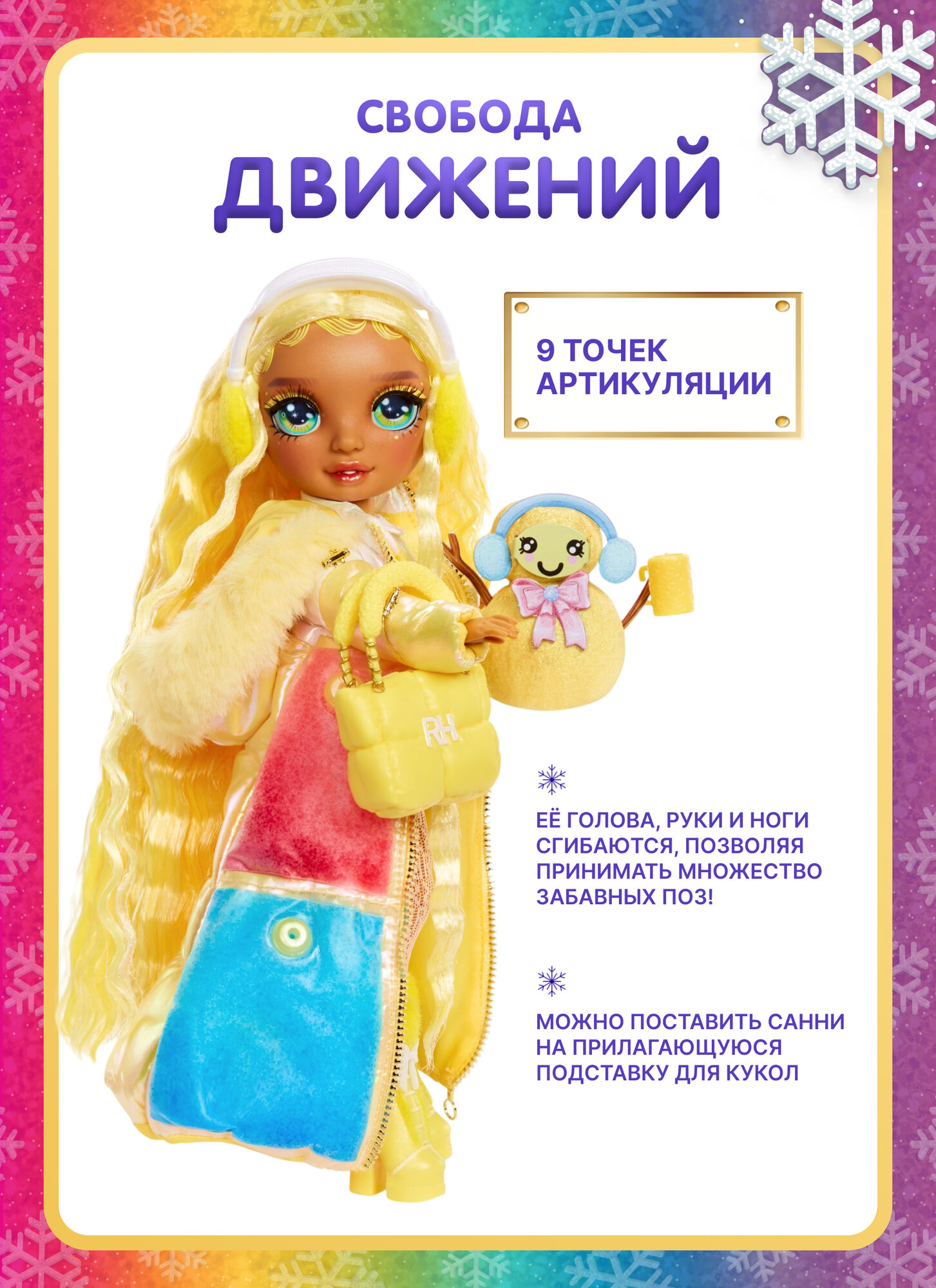 КОМПЛЕКТ ВХОДИТ: 28 см кукла-модница с полным нарядом, ботинками, наушниками, сумочкой, зимними аксессуарами и многоразовым набором для лепки снеговика (формочка, многоразовая карточка-аксессуар для лепки снеговика из волшебного снега (песка)), 1 пипетка (шприц), 1 расческа, 1 подставка для куклы.