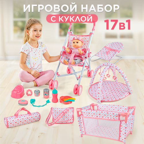 Подарочный набор для девочки 17 в 1 состоит из куклы-пупса и комплекта аксессуаров для ухода за ней. Такой набор станет отличным подарком для детей от 3 лет — он надолго увлечет ребенка и поможет развить ролевые навыки и воображение.