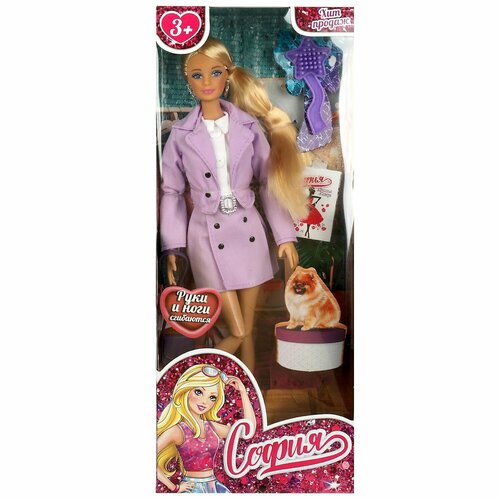 Модница София одета в сиреневый костюм с пиджаком, образ дополняют стильные серьги. Одежду и аксессуары легко снять и надеть. С такой модной куклой девочке будет интересно и весело играть: благодаря тому, что руки и ноги куклы подвижны, им можно придать любое положение. У Софии длинные красивые волосы, которые хозяйка куклы сможет заплетать в разные причёски. Детально проработанный дизайн игрушки вдохновит девочку на новые игровые сюжеты. Особенности: