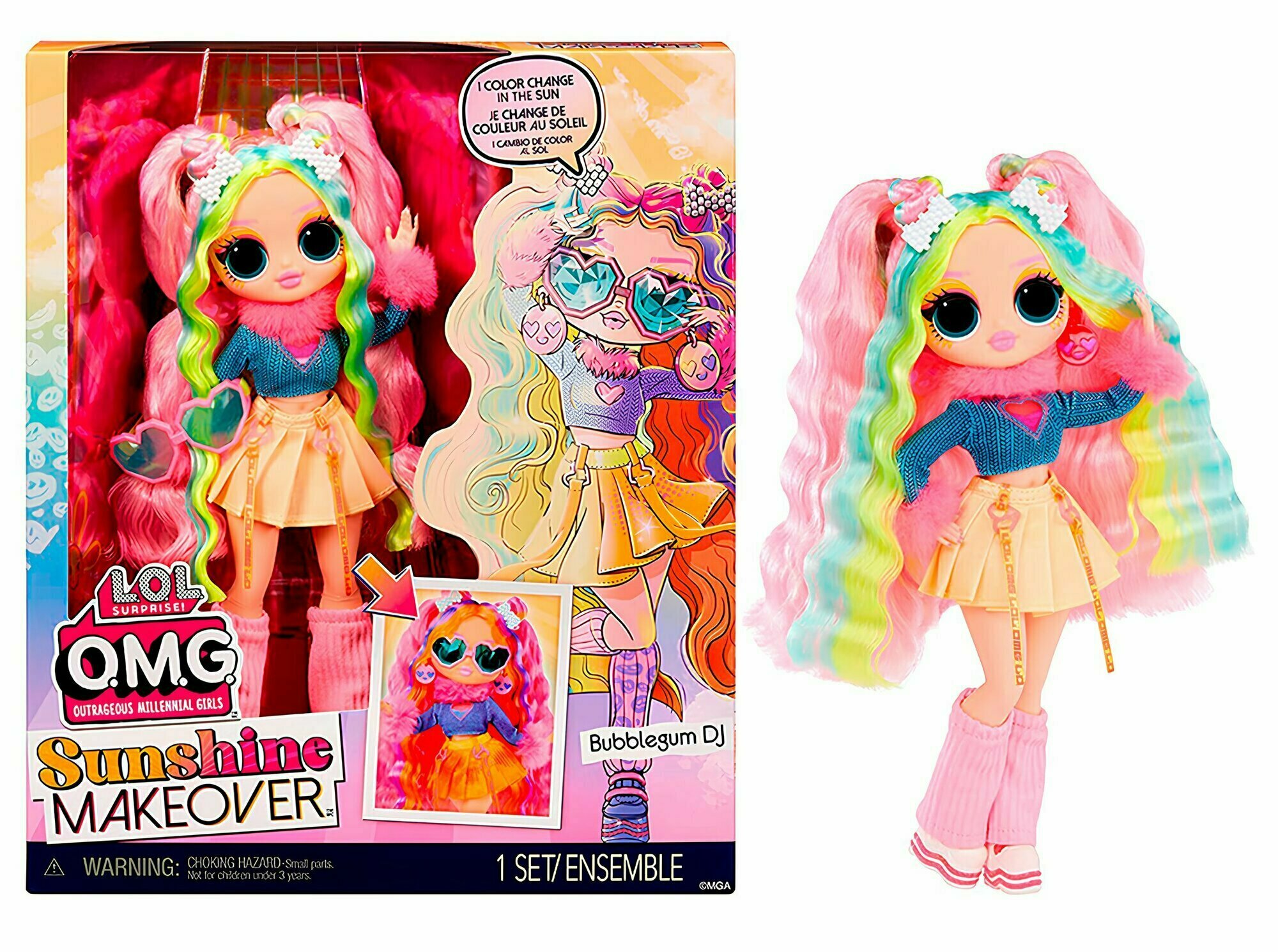 Купить Кукла-сюрприз ЛОЛ Солнечный макияж DJ Баблгам / LOL Surprise OMG Sunshine Makeover DJ Bublegum (25см) с меняющимся цветом на солнце с доставкой по всей России.