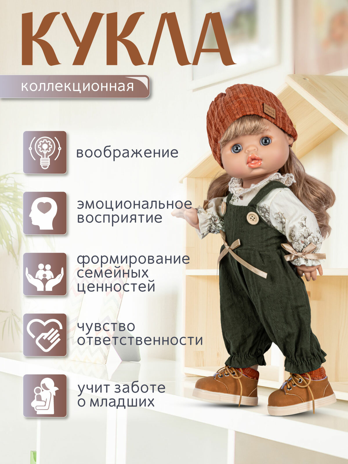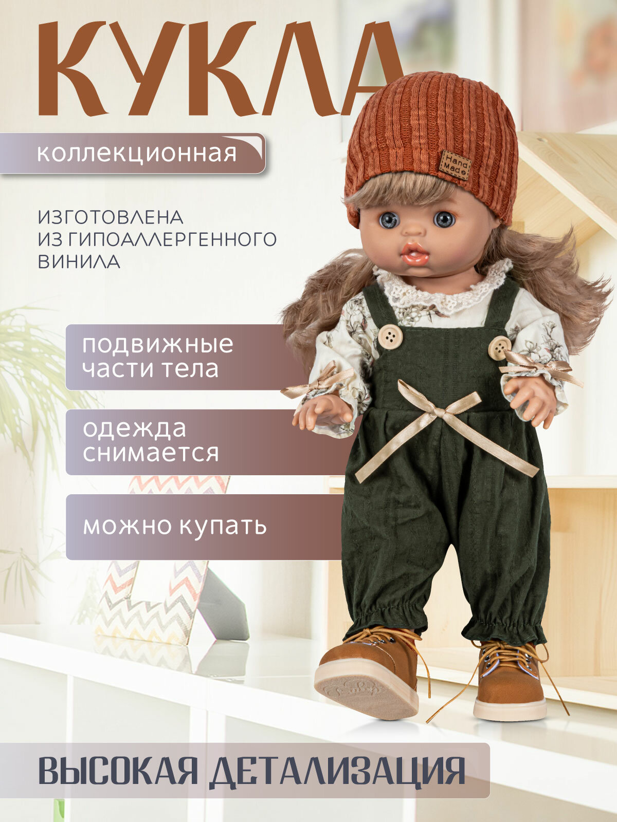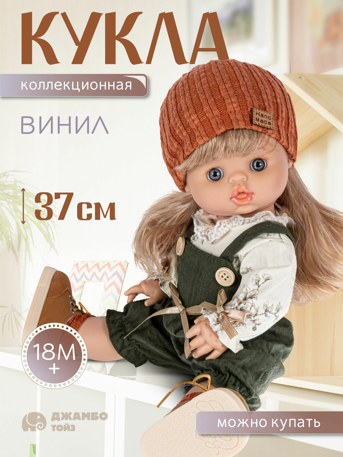 Кукла высотой 37 см выполнена из качественного и безопасного винила.