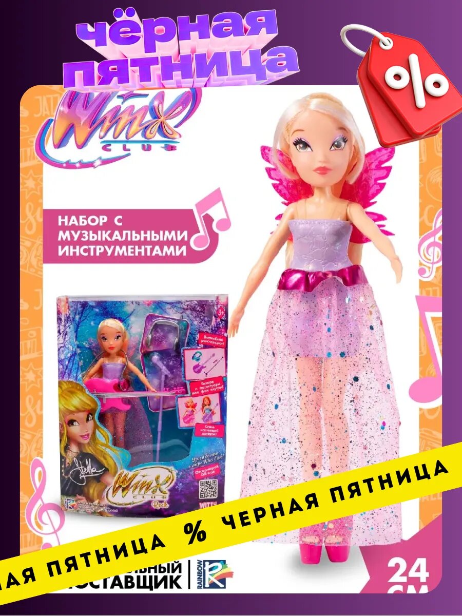 Купить Кукла Винкс Стелла шарнирная с крыльями и гитарой с доставкой по всей России.