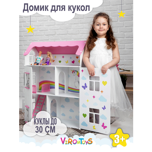Кукольный домик для кукол. В деревянном домике для кукол, просторная и удобная планировка дома делает процесс игры максимально удобным для ребенка. С таким многофункциональным кукольным домиком дети будут придумывать и проигрывать множество интересных сюжетов, при этом во время игры будут развиваться моторика, социальные и бытовые навыки, творческие, дизайнерские способности. Домик для кукол,барби изготовлен из МДФ детально гладкий. Дом для барби, дом для кукол лол легко собирается без инструментов. Малышкам будет интересно играть в куклы в таком большом деревянном домике, укладывать спать, прибирается и тем самым изучать модель семьи. Деревянный кукольный домик - отличный подарок для девочек, развивающая игрушка. Домик любимая игрушка для ребенка, украсит любую комнату. Вам будет обеспечен детский восторг от такого волшебного кукольного домика. Деревянные домики, подарок для девочки.
