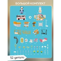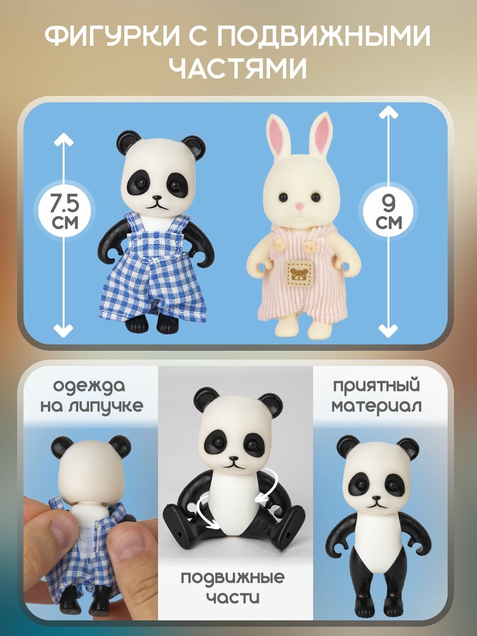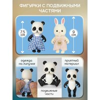 Милые герои: в комплекте идут флокированные фигурки панды и зайчика, которые можно легко переодевать благодаря одежде на липучках и резинках.