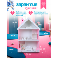 Кукольный домик – это игрушка, которая обязательно порадует любую девочку. Домик изготовлен из дерева и включает в себя множество комнат, в которых можно разместить кукол. Деревянный кукольный домик – это не только игрушка, но и способ развить у ребенка творческое мышление и воображение. Он также может помочь в развитии социальных навыков, так как игра в кукольный домик может научить детей общаться и взаимодействовать друг с другом. Габариты собранного домика: 98 х 60 х 30 см. Высота этажа - 32 см. В детской комнате домик займет немного места, при этом внутри он вместительный и просторный. Мы предлагаем широкий ассортимент кукольных домиков, которые подходят для разных возрастов и интересов детей. Когда ребенок подрастет, домик можно использовать как шкаф - стеллаж для книг и учебников, также его можно украсить наклейками или другими деталями. Кукольный дом станет украшением любой детской. Натуральные материалы и плавные линии элементов декора создадут уют и нежную атмосферу в комнате. Если вы хотите порадовать свою дочь, племянницу, крестницу, сестру, внучку, то деревянный кукольный домик будет отличным подарком на Новый год 2024, день рождения, 8 марта, день защиты детей. Домик может стать центром их игр и воображения, помогая развивать их творческие способности и социальные навыки. EcoBaby, PAREMO, Playtown, Каролина, WiMi, ZABIAKA, забияка, Тридевятое царство, OZON Россия, Эврики, Dolodom.