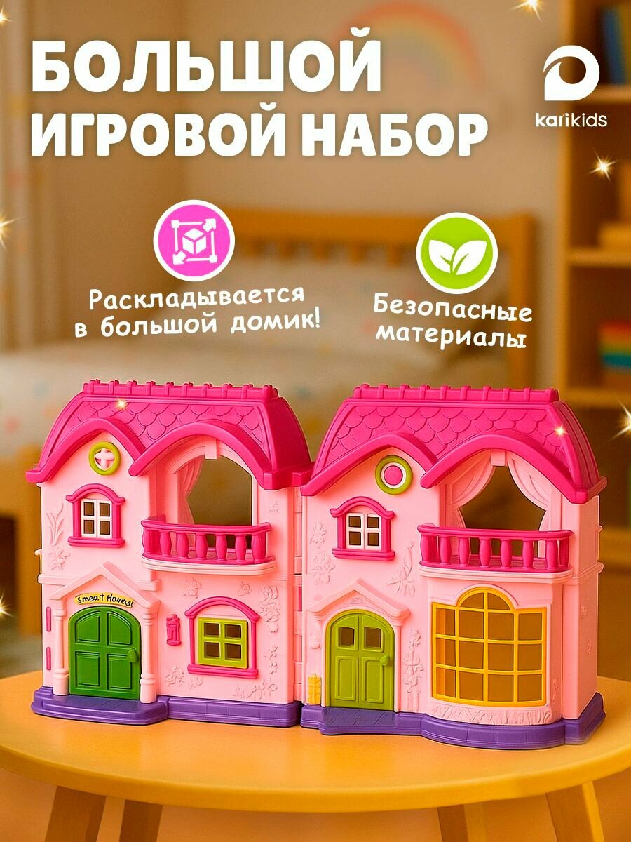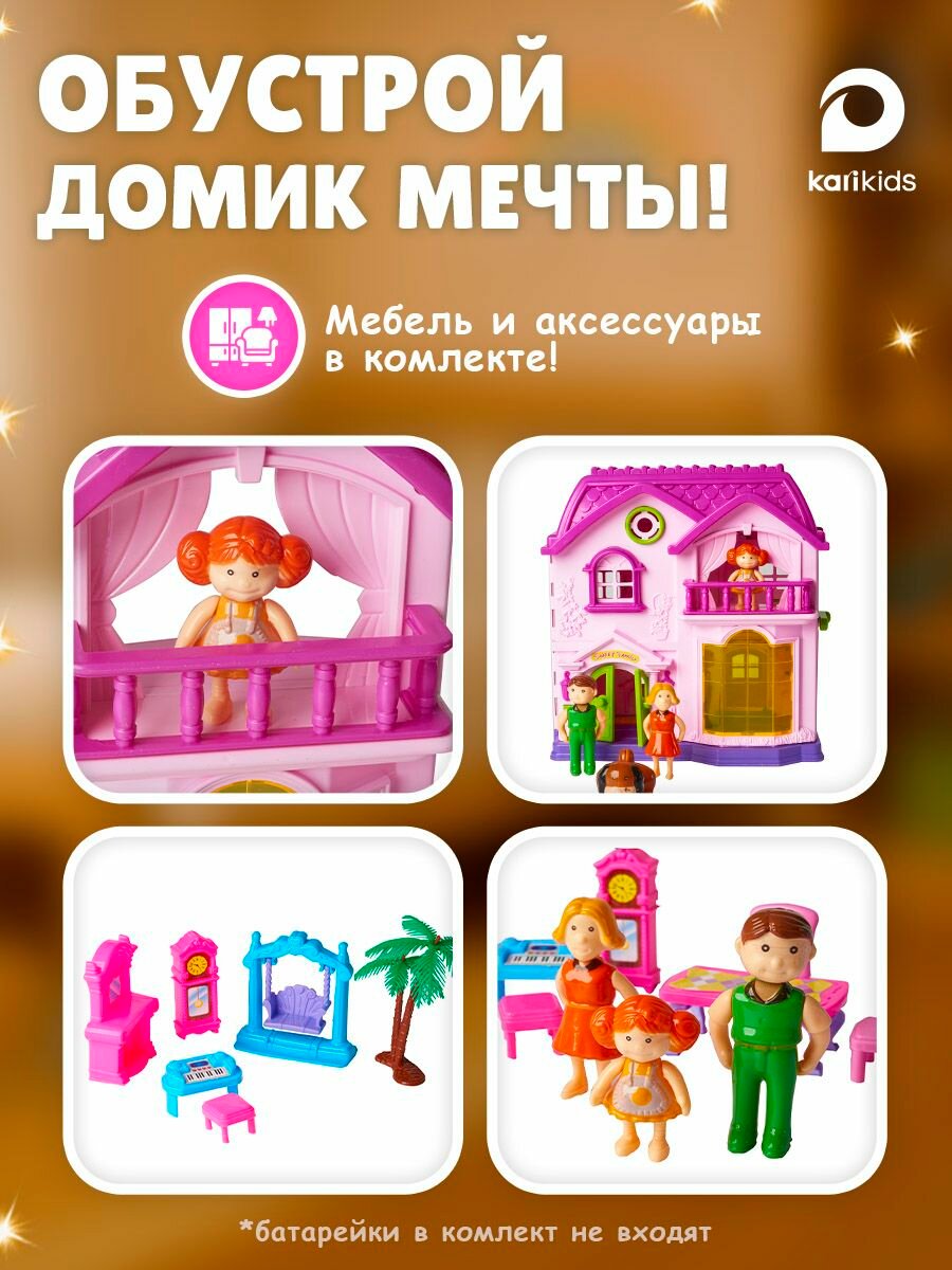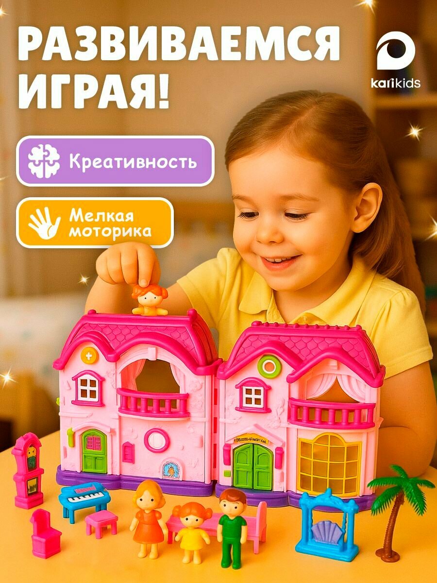 Купить Кукольный домик kari с мебелью и куклами для девочек 25 предметов, цвет розовый с доставкой по всей России.