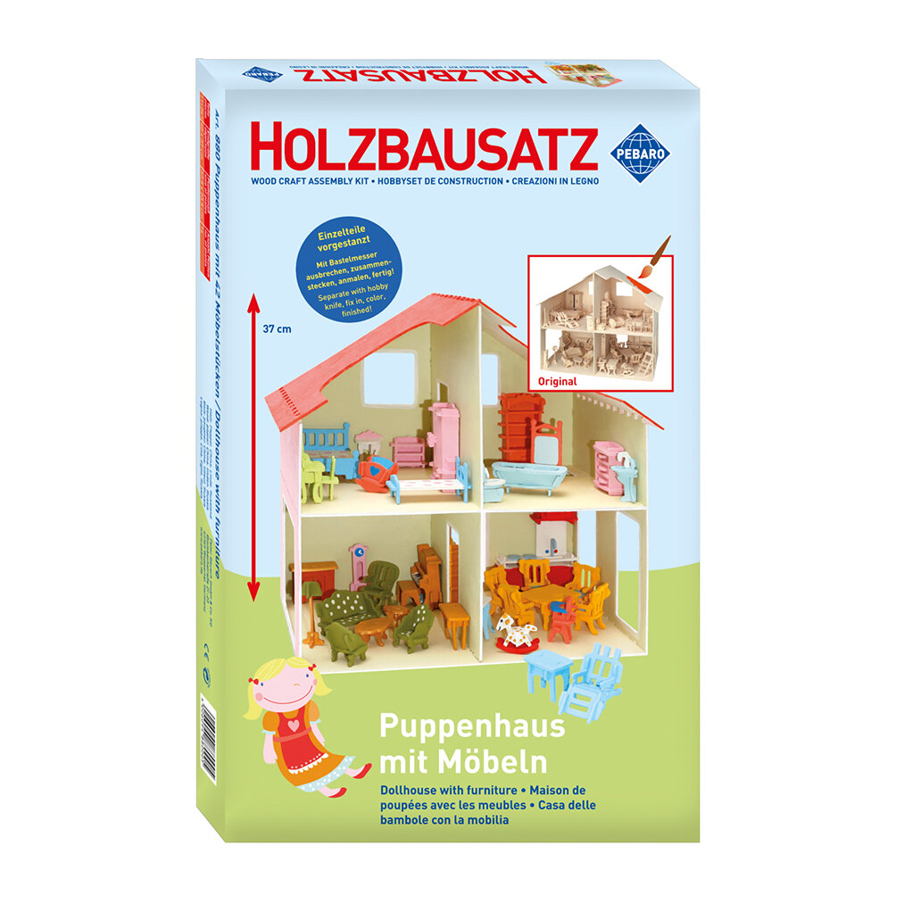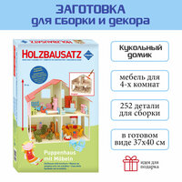 Купить Кукольный домик «Pebaro 880», 252 детали для сборки, 2 этажа, с мебелью, размер 37*40 см с доставкой по всей России.