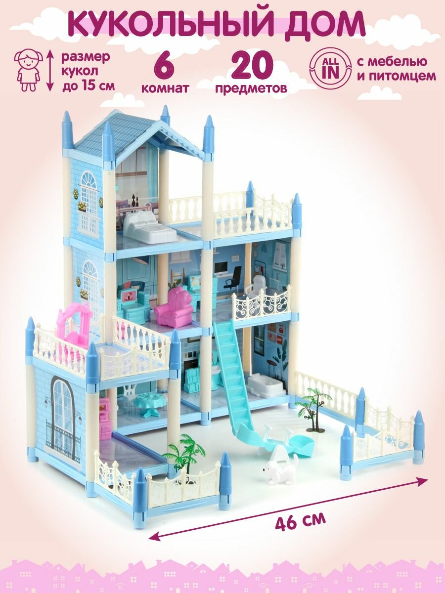 Купить Кукольный домик с мебелью для девочек, Veld Co / Игрушечный дом для кукол барби с аксессуарами и питомцем с доставкой по всей России.