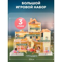 Купить Кукольный домик с мебелью и куклами, холодный пар, со светом, 276 предметов, 69 см с доставкой по всей России.