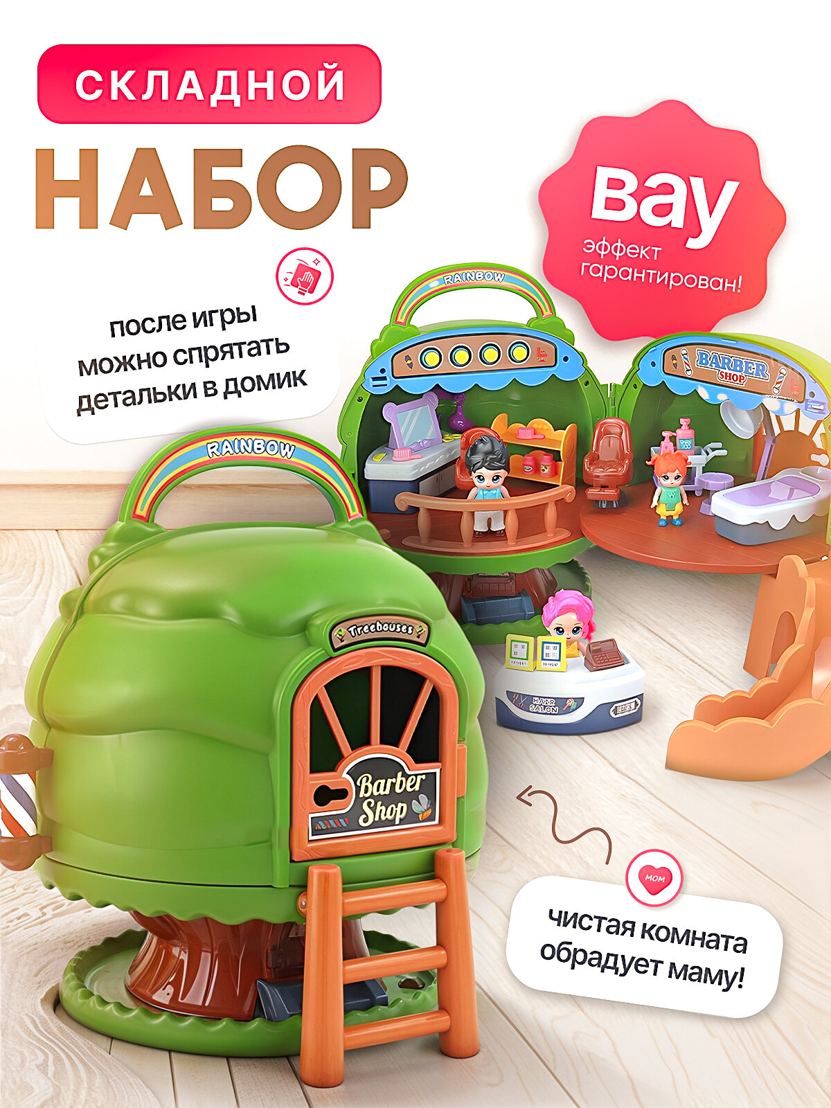 Купить Кукольный домик с мебелью Парикмахерская на дереве с доставкой по всей России.