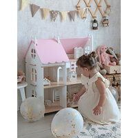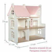 Деревянный домик «Вилла Сканди» розовая открытого типа в 3 этажа с мансардой под крышей прекрасно впишется в современный интерьер детской комнаты, и будет не только любимой игрушкой, но и украшением ее. Кукольный домик представлен в оттенках белого и натурального дерева, оживленных нежным розовыми цветом. Нежно-розовый оттенок добавит тепла и уюта в игровое пространство вашего ребенка, делая каждую игру еще более волшебной. Эта палитра превосходно впишется в современный интерьер детской комнаты, делая ее более ярким и привлекательным, таким как любят девочки. Домик подходит для кукол высотой 10-16 см, для кукол Эви, Челси , лол, сильвани зайчиков, мышат Mailego и тп. Размер домика в собранном состоянии: Высота -74 см Ширина -71 см Глубина -41 см Мебель к домику приобретается отдельно, давая возможность обустроить его по своему усмотрению. Крыша домика легко открывается, обеспечивая свободный доступ к мансардному этажу и раскрывая новые сценарии для игр. Изготовлен из экологически чистых и гипоаллергенных материалов, безопасен для вашего ребенка. Конструкция из высококачественного МДФ и березовой фанеры высшего качества с толщиной стенок в 1 см гарантирует долговечность и прочность изделия. Все поверхности домика идеально гладкие и отшлифованные, что делает их безопасными и приятными на ощупь. Покрытые трехслойной премиум акриловой краской и лаком на водной основе экологичны и безопасны для детей, что подтверждено соответствующими сертификатами. Сборка домика приятно удивит родителей, ведь домик собирается как конструктор, быстро и без инструментов и займёт не больше 5-10 минут.