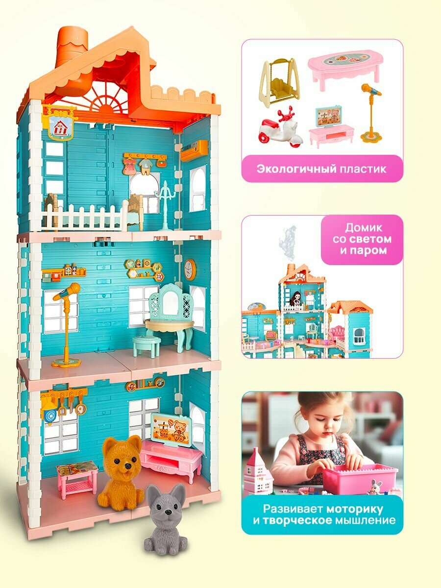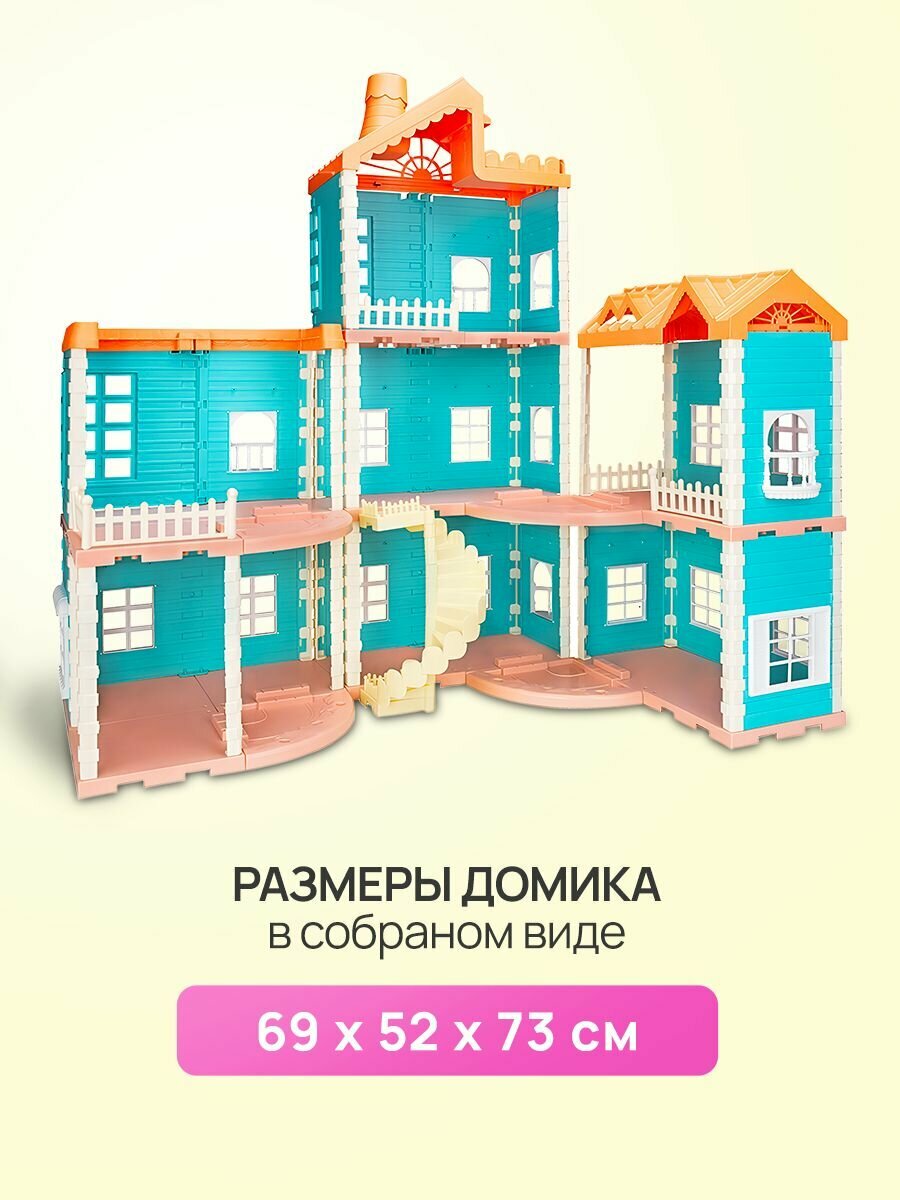 Купить Кукольный игровой домик с мебелью «вилла» 69х52х73 см. 3 куклы и питомец, 276 деталей. Подарок для девочек с доставкой по всей России.
