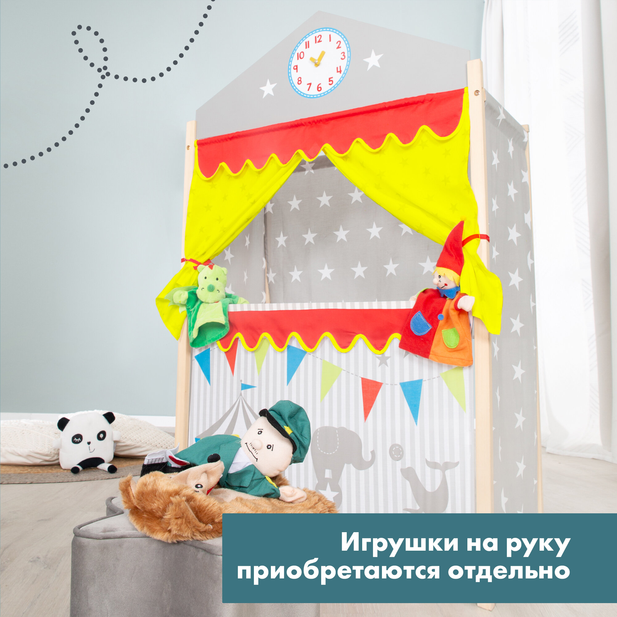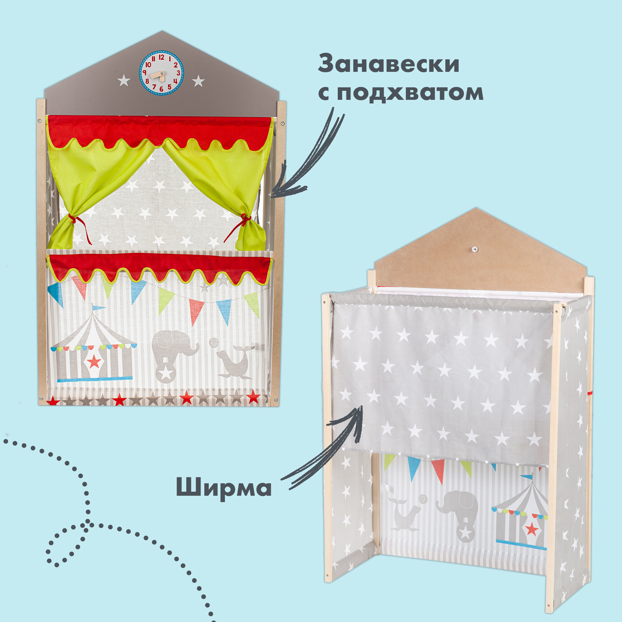 Детский кукольный театр развивает творческий потенциал и воображение детей, способствует развитию речевых навыков, креативности и социального взаимодействия. С таким театром от немецкого бренда Roba ваш ребенок будет с удовольствием разыгрывать маленькие спектакли, представляя себя на сцене. Игра в кукольный театр также успешно помогает детям преодолеть барьеры в общении и выражении эмоций. Игровой театр оснащен часами, занавесками и ширмой. Обеспечит максимум веселья и реалистичность театрального представления в детской комнате. Текстильные декорации с веселым принтом в виде цирковых мотивов превратят игру в красочное шоу. Театр для сюжетно-ролевой игры может стать отличным способом провести время с семьей или друзьями, создавая совместные воспоминания и укрепляя отношения. Театр с ширмой также успешно может использоваться для проведения творческих занятий и выступлений в детском саду. Легкий вес позволяет с легкостью перемещать домик в центр помещения и обратно по мере необходимости. Отличительные особенности: Подходит для детей дошкольного возраста в возрасте от 3 лет, и станет отличным дополнением к развивающим игрушкам. Реалистичное исполнение. Ширма позволяет легко скрыть актёров за сценой, добавляя элемент волшебства и таинственности в каждую постановку. Материалы: массив дерева, МДФ (лакированный) и текстиль. Деревянная конструкция обеспечивает надежность и долговечность, а яркий дизайн привлекает внимание малышей. Съемный текстиль можно стирать в стиральной машине. Все материалы, используемые для кукольного театра, прошли испытания и сертифицированы. Немецкая компания Roba гарантирует отсутствие вредных веществ, водостойкость покрытий и безопасность всей своей продукции. Данный игровой набор был разработан в Германии в соответствии с европейским стандартом безопасности игрушек EN 71-1:2014. Товар сертифицирован. Быстрая и легкая сборка. Отличный подарок для мальчиков и девочек на любой праздник (день рождения, Новый год). Идеально подходит как для домашнего использования, так и для детских садов, где можно организовать незабываемые спектакли. Размеры (ВхШхГ): 129 х 84 х 39 см Легкий вес 2.98 кг Наборы перчаточных кукол Roba (арт. 925483974 и 889755910) станут прекрасным дополнением к театру.