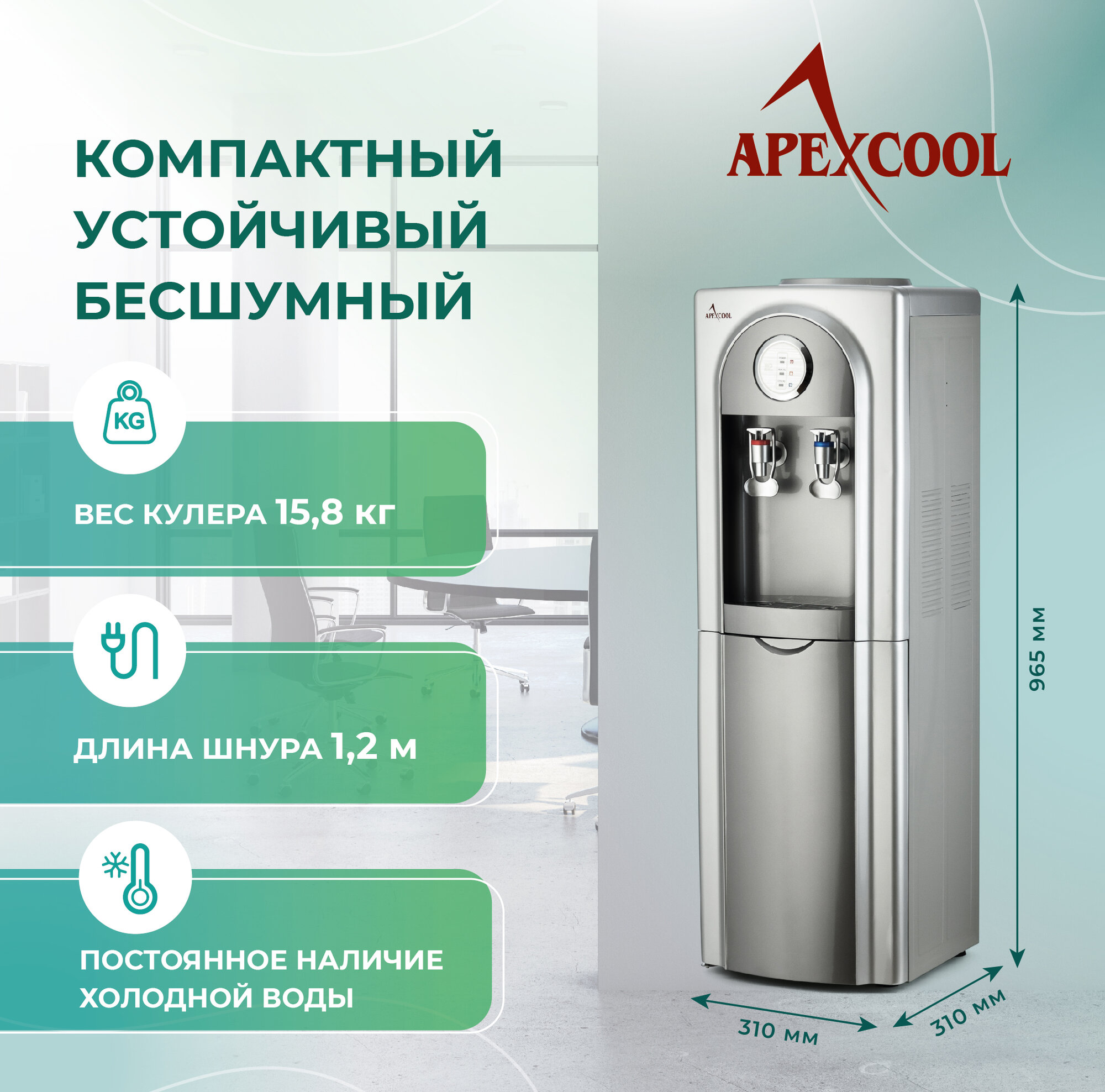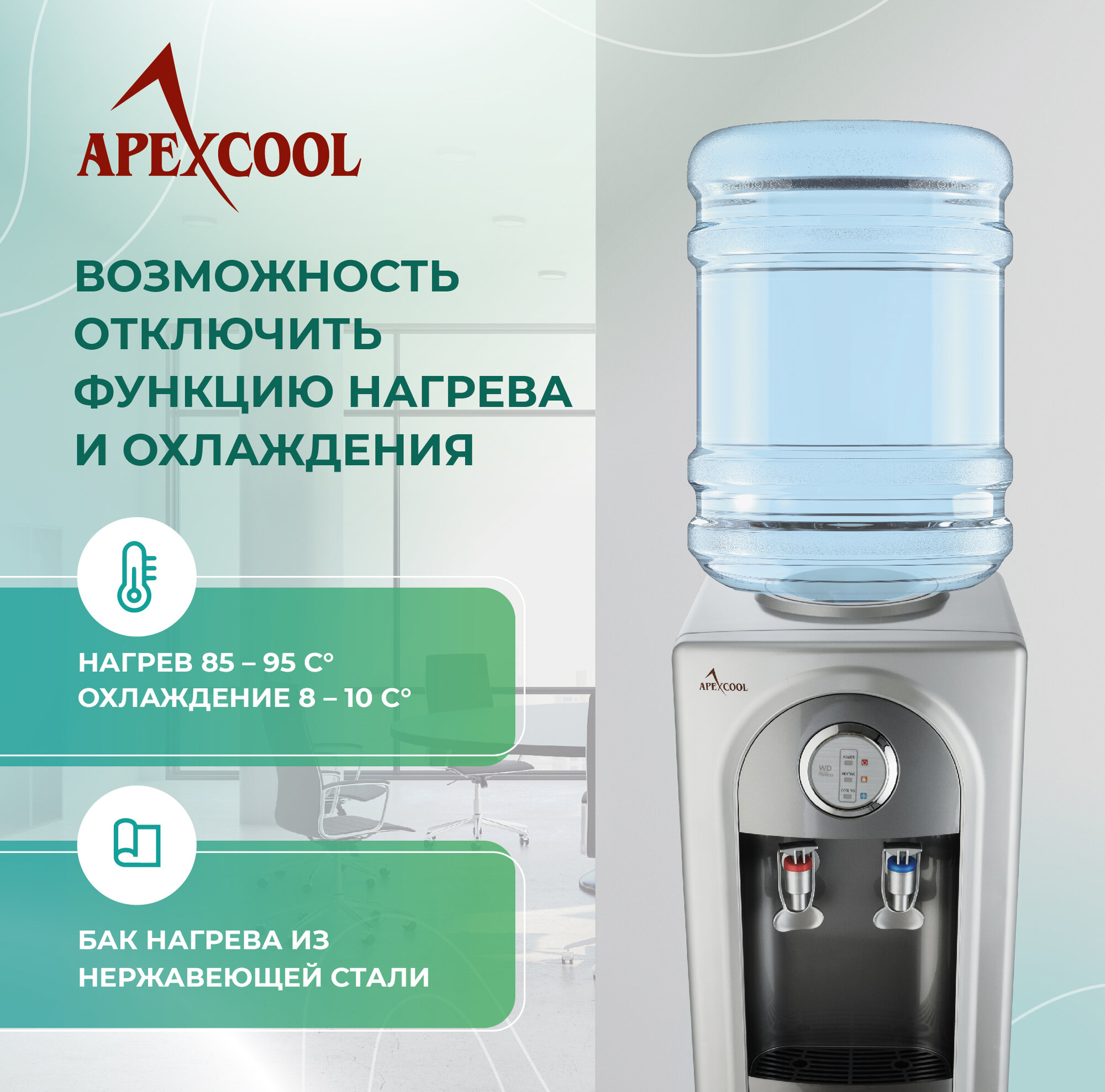 Кулеры для воды APEXCOOL 16 LBE осуществляют нагрев, охлаждение питьевой воды из бутылей емкостью 12 или 19 литров.