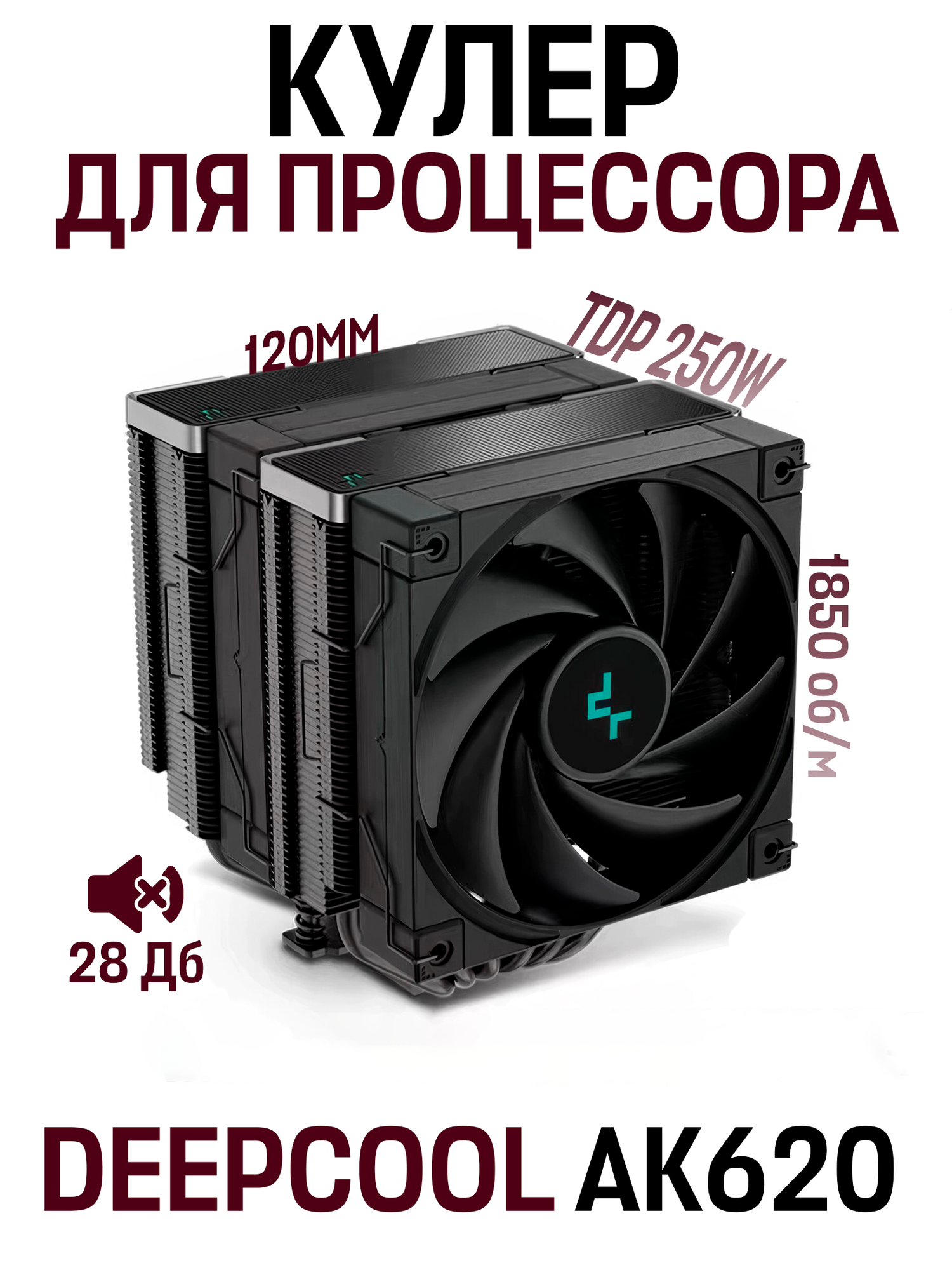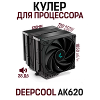 Кулер DEEPCOOL AK620 Zero Dark LGA20XX/1700/1200/115X/AM4 , TDP 260W, Pwm, 120mm, 6 тепл, черный: сравнение цен, характеристики, фото, актуальное наличие и цены.
