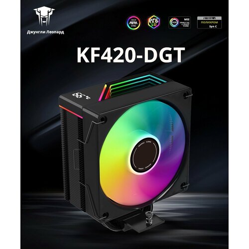 Jungle Leopard KF420 DGT Цифровой излучатель | Эффективное охлаждение, гарантия производительности Тип продукта: Кулер для процессора Модель: Jungle Leopard KF420 Особенности: 12-сантиметровый вентилятор с ARGB-подсветкой + цифровой дисплей с контролем температуры + бесшумный вентилятор с ШИМ