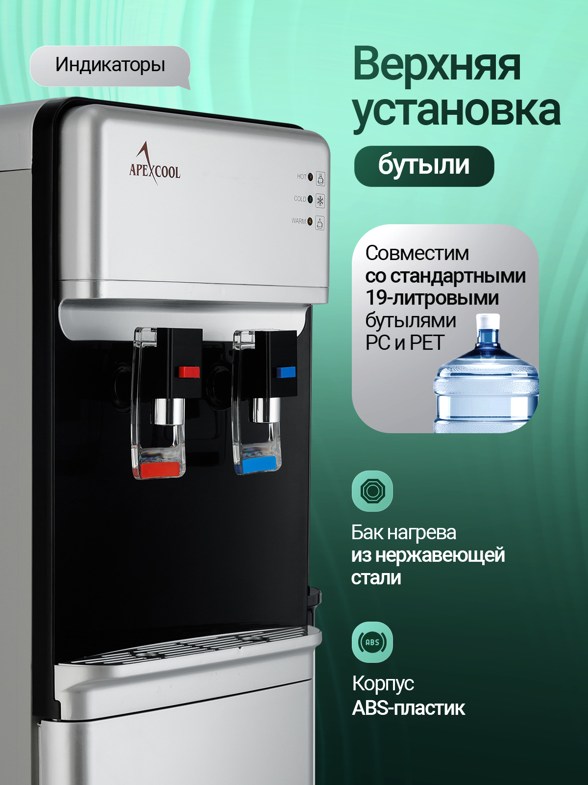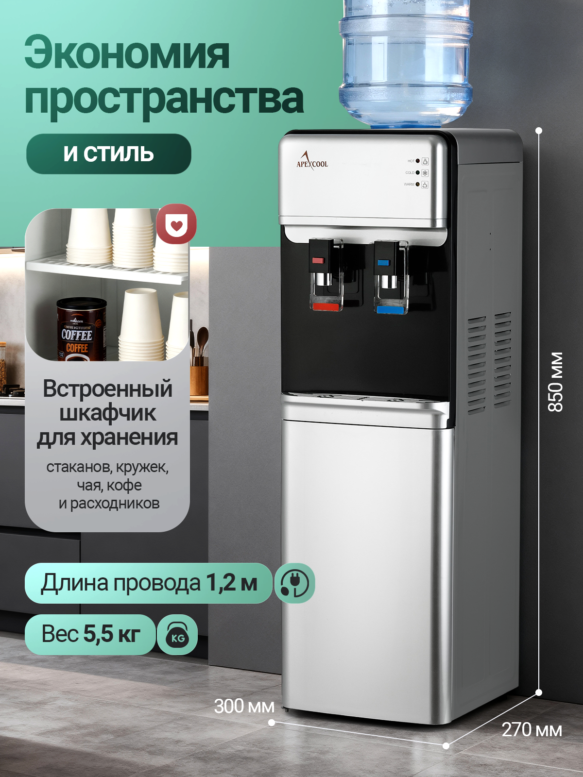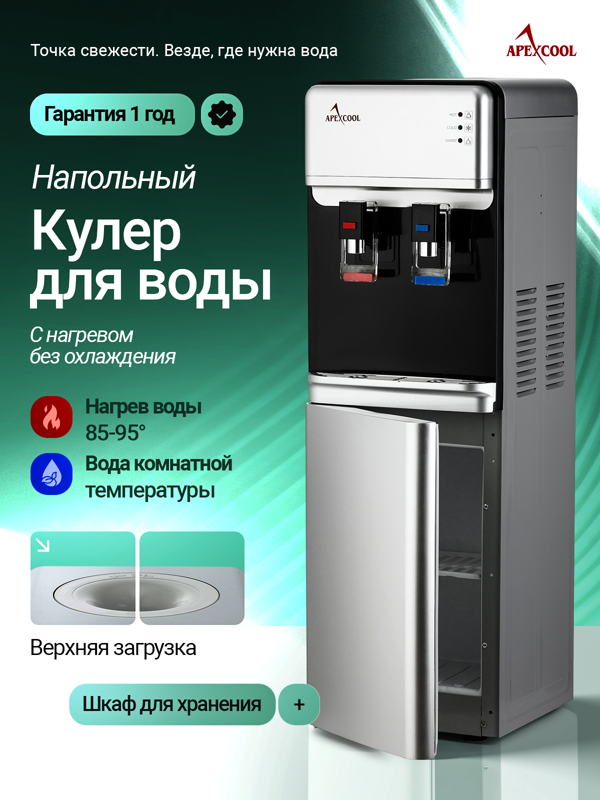Кулер для воды напольный со шкафчиком APEXCOOL 07 LK нагрев без охлаждения: сравнение цен, характеристики, фото, актуальное наличие и цены.