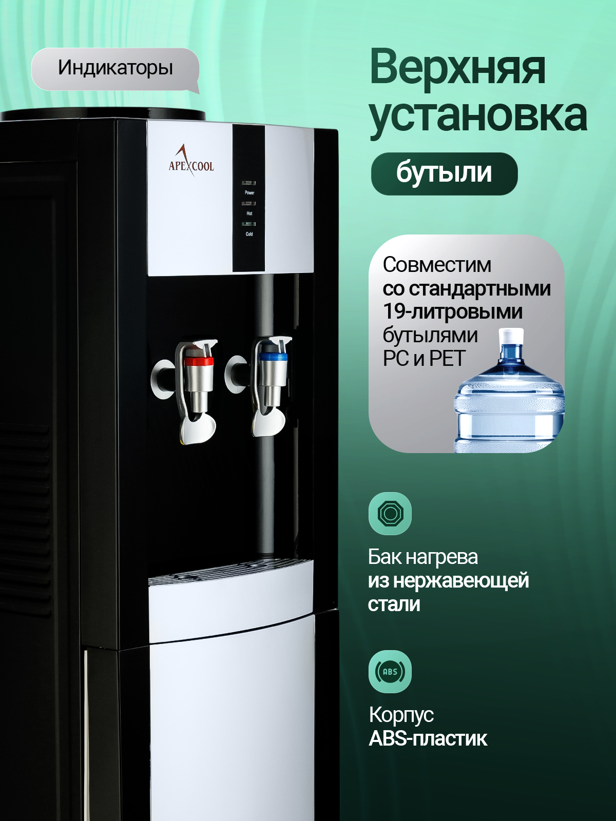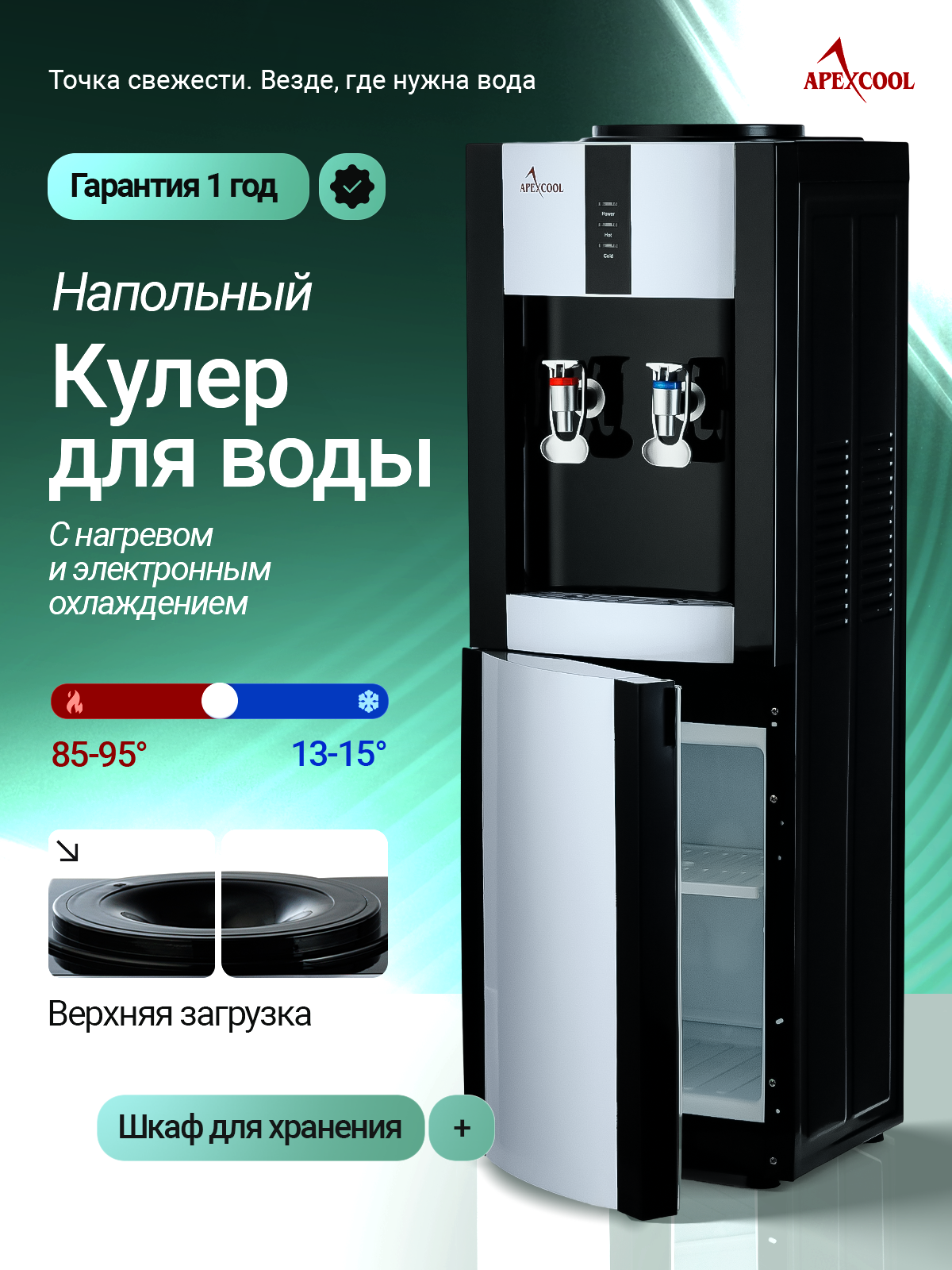 Кулер для воды напольный APEXCOOL 16LD черный нагрев и охлаждение со шкафчиком: сравнение цен, характеристики, фото, актуальное наличие и цены.