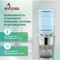 Купить Кулер для воды напольный APEXCOOL 16LE серебристый нагрев и охлаждение со шкафчиком с доставкой по всей России.