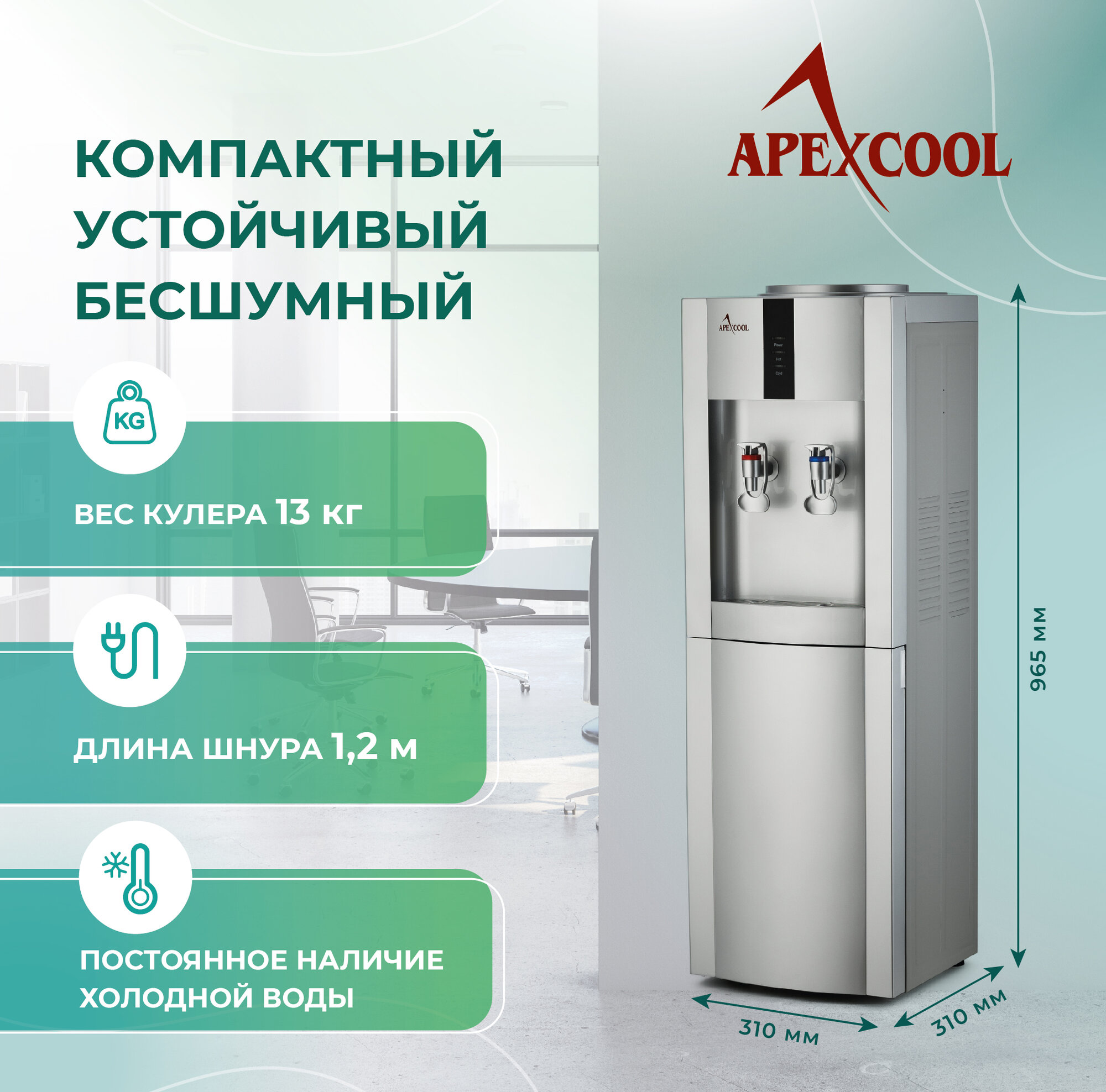 Кулер для воды напольный APEXCOOL 16LE серебристый нагрев и охлаждение со шкафчиком: сравнение цен, характеристики, фото, актуальное наличие и цены.