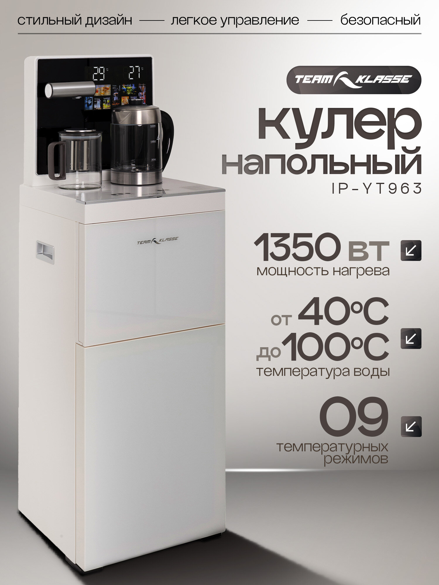 Купить Кулер для воды напольный «Team Klasse» IP-YT963 с нагревом, белый с доставкой по всей России. Кулер для воды напольный «Team Klasse» IP-YT963 с нагревом, белый: сравнение цен, характеристики, фото, актуальное наличие и цены.