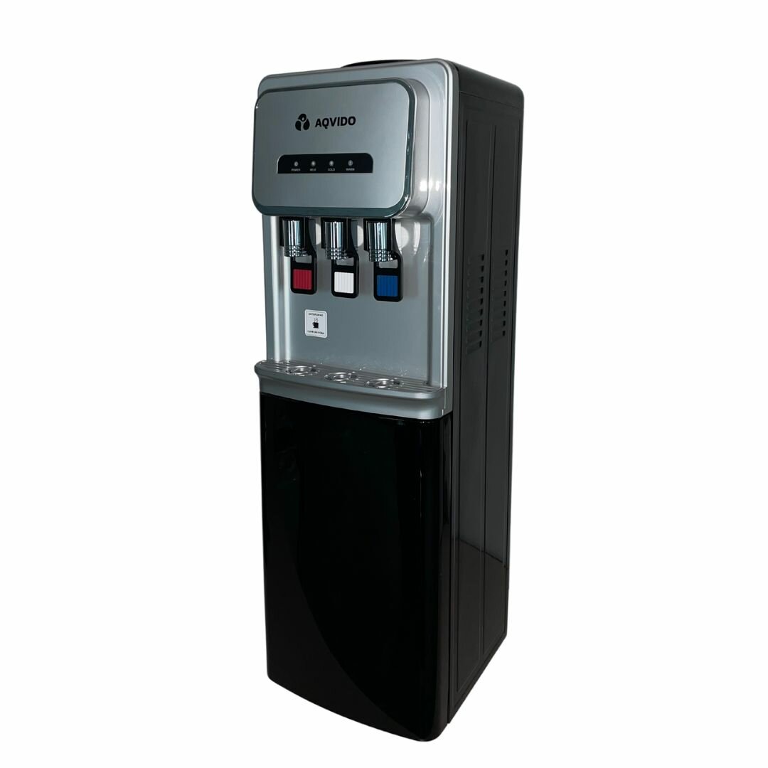 Напольный кулер для воды с нагревом и электронным охлаждением. Стильный кулер для воды напольный AQVIDO BSY-802L станет для Вас не только средством для быстрого доступа к чистой воде, но и стильным атрибутом для дома и офиса. Кулер для воды в черно-серебристом цвете отлично впишется в любой интерьер. Напольный кулер для воды оснащен нагревом и электронным охлаждением. Напольный кулер с нагревом и охлаждением имеет верхнюю загрузку бутыли, что позволяет практично использовать свободное пространство корпуса. Корпус кулера напольного оснащен шкафчиком с дверцей для хранения чая, кофе, кружек, стаканчиков. Данный шкафчик не имеет охлаждения и не может использоваться, как холодильник. Кулер для воды оснащен тремя краниками для подачи воды: горячей, холодной и комнатной температуры. Это очень актуально для больших кампаний и мест общего пользования. Кулер для воды с нагревом и охлаждением нагреет воду до температуры 95 С со скоростью 5 л/ч, а охладит до 15С со скоростью 0,7 л/ч. Охлаждение кулера с нагревом и охлаждением происходит посредством потока охлажденного воздуха, который втягивается в аппарат вентилятором. При нагреве вода в кулере для воды не закипает, то есть все полезные свойства воды сохраняются. Дополнительные преимущества кулера для воды напольного AQVIDO: -невысокая стоимость; -отсутствие хладогента; -экологичность; -можно транспортировать в горизонтальном положении; -небольшой вес.