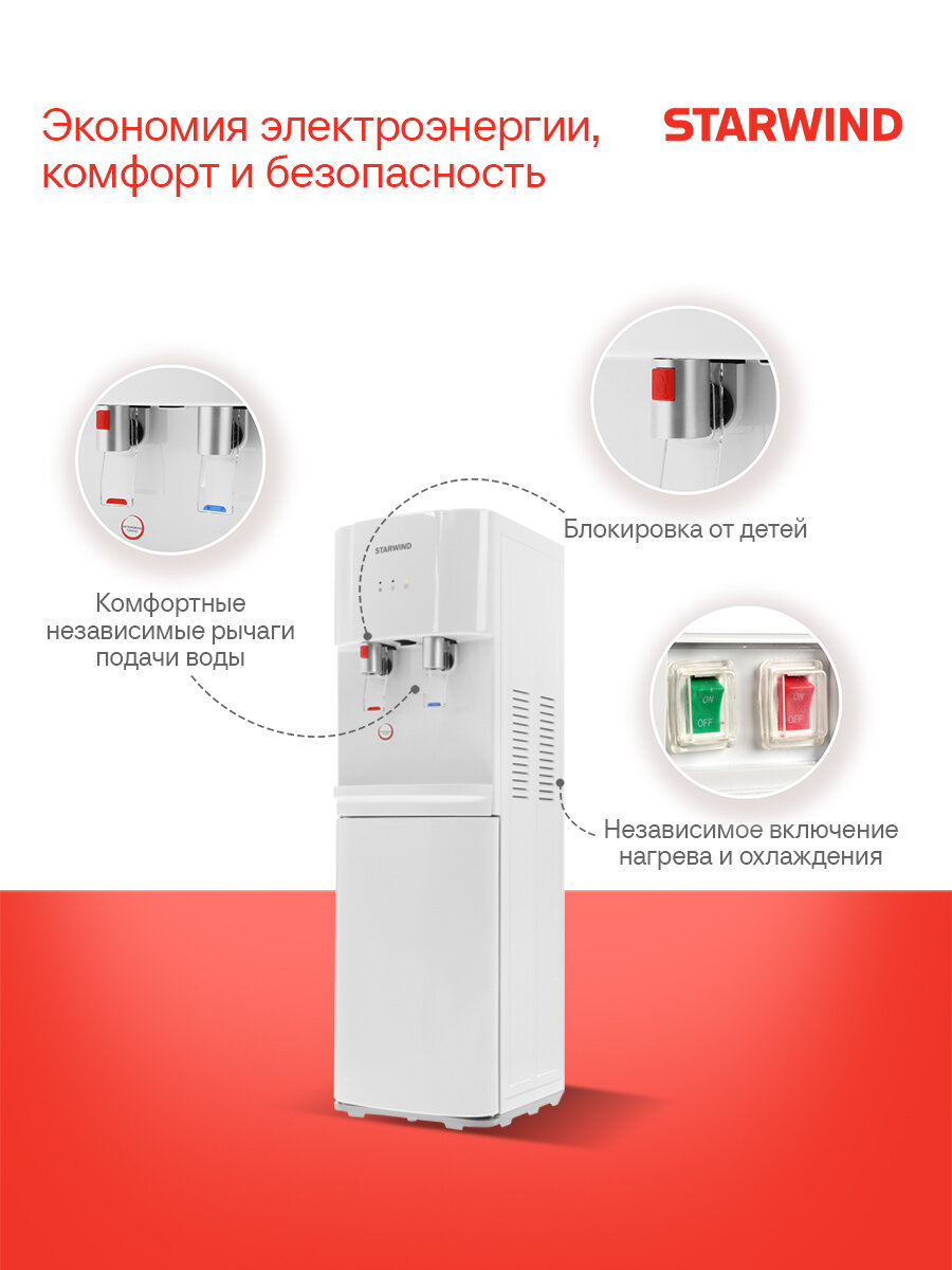 Выбирая кулер для воды Starwind SW-1113EW, вы получаете надежный и функциональный аппарат, который обеспечит вас и ваших близких чистой и прохладной водой в любое время.