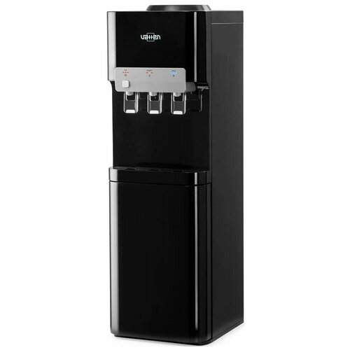 Данный кулер V11NKB компрессорный, с верхним расположением бутыли. Три пуш крана для горячей, холодной, и для воды комнатной температуры. Есть блокировка крана горячей воды (защита от детей). Есть холодильник.
