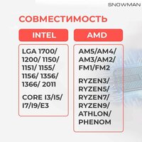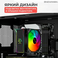 Кулер для охлаждения процессора Snowman M-T620 RGB – устройство со сбалансированными характеристиками. Оно подойдет для различных систем, возможно поставить на платы с различными видами сокетов. Для этого вместе с кулером в коробку прикладываются крепления под них. Крепление кулера на защелках.