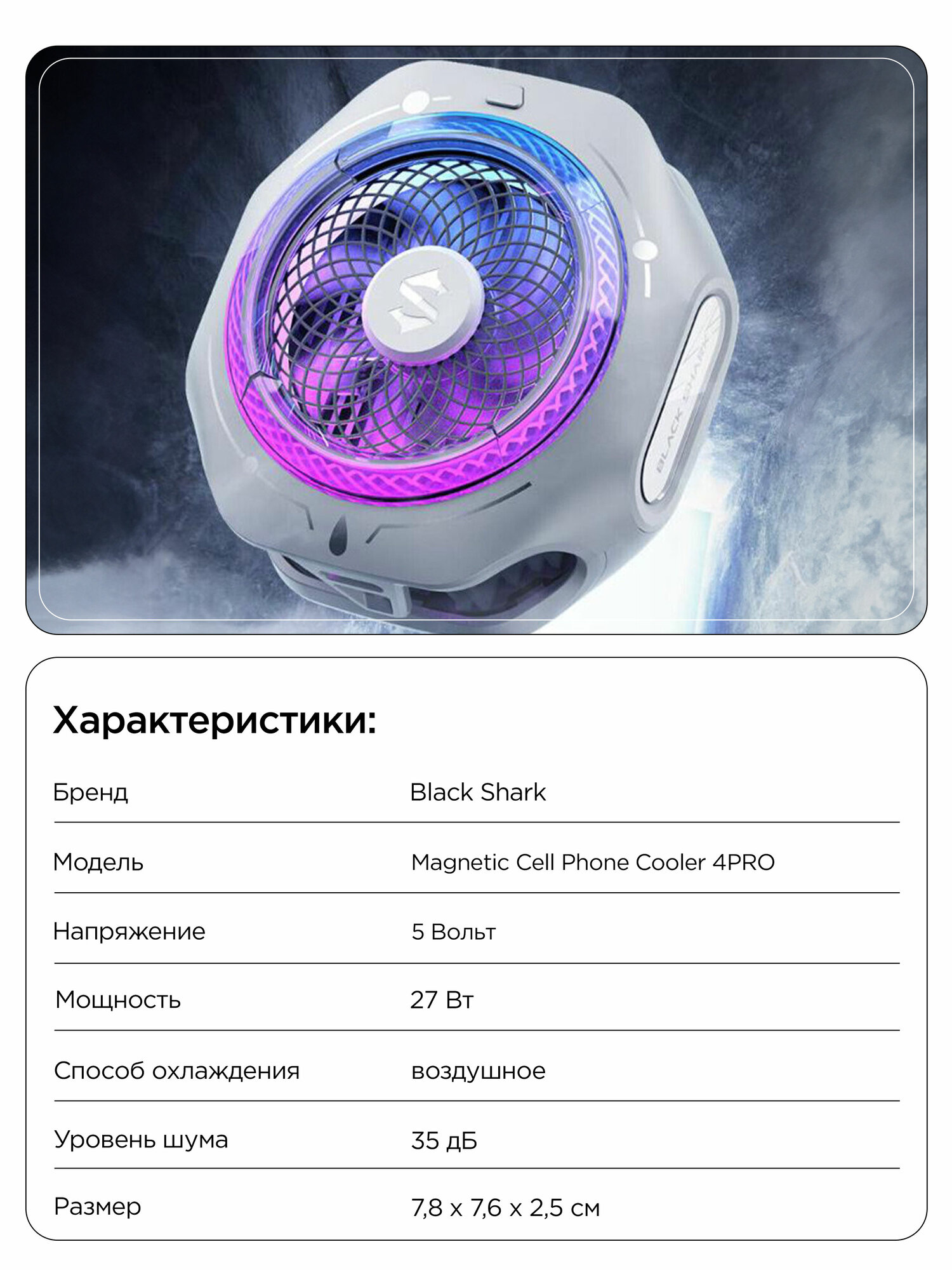 | Дополнительная информация | Мобильное приложение: есть (SharkCooler). Управление через приложение: скорость, подсветка, таймер |