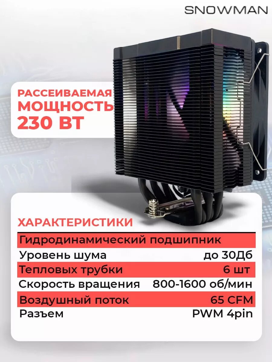 Кулер вентилятор башенный Snowman (Снеговик) MT6-V3 для процессора c RGB подсветкой: сравнение цен, характеристики, фото, актуальное наличие и цены.