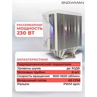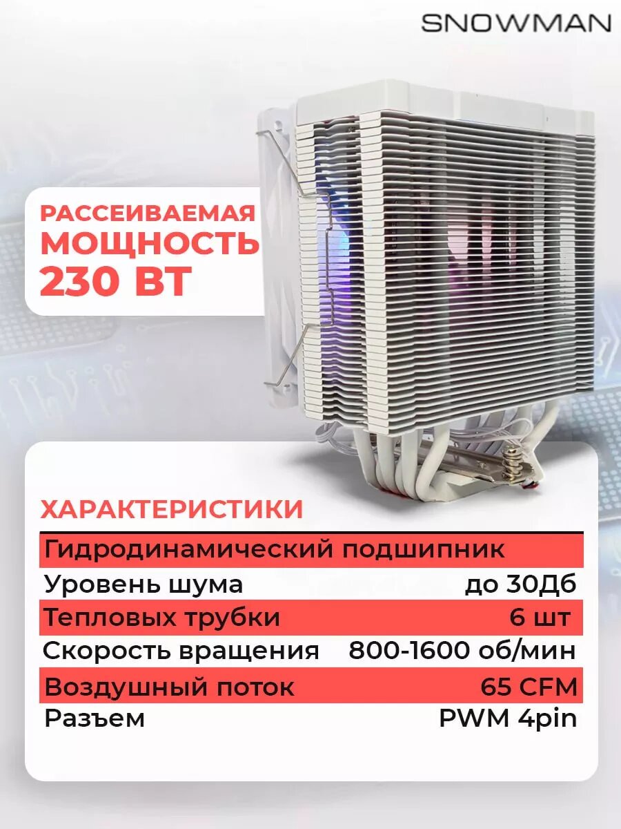 Кулер вентилятор Snowman MT6 v3, башенный, RGB, гидродинамический подшипник, 230Вт: сравнение цен, характеристики, фото, актуальное наличие и цены.