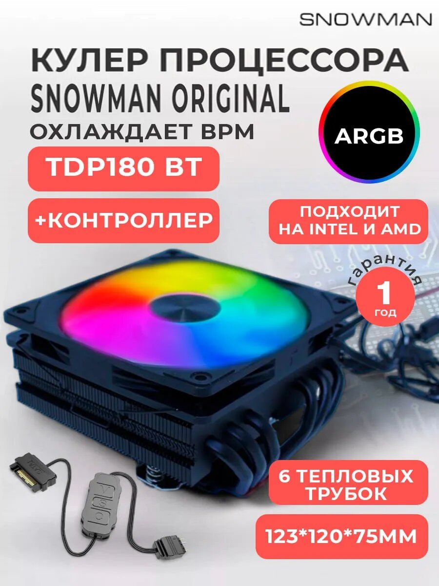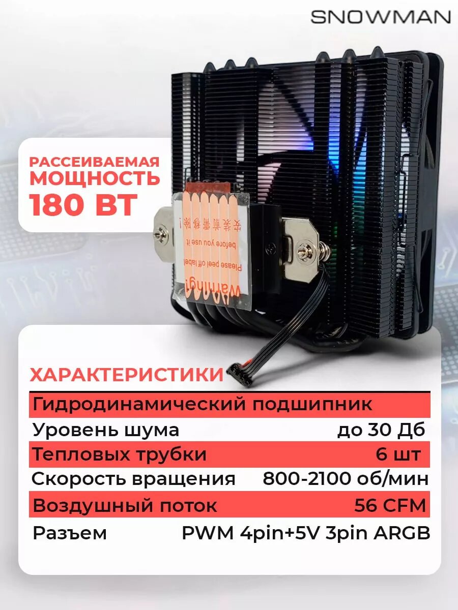 Кулер Snowman MC75-6, башенный, с RGB подсветкой и контроллером, 1 вентилятор, TDP 180Вт: сравнение цен, характеристики, фото, актуальное наличие и цены.