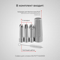 Благодаря сифону Bufett, сливки получаются легкими и воздушными. Это отличная вкусовая добавка к кофе, а также декоративный элемент, способный украсить множество сладостей.