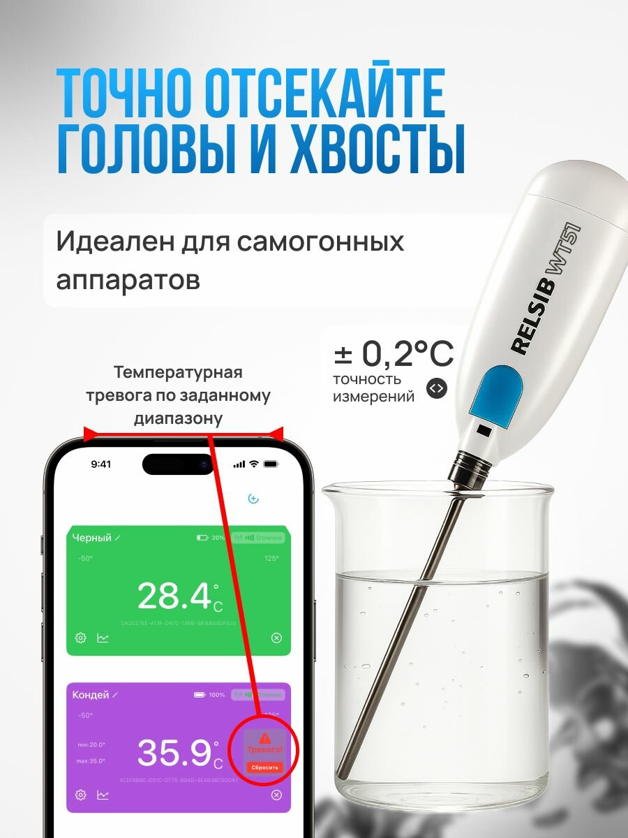 Электронный термометр RELSIB WT51 – универсальный измеритель температуры с передачей данных по Bluetooth на смартфон. Это современный термометр с блютуз-функцией, который подходит как для домашнего, так и профессионального применения. Благодаря российской разработке и серийному производству в Новосибирске прибор сочетает надёжность и современный функционал: