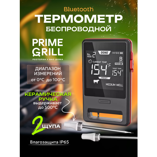 Кулинарный Bluetooth термометр с репитером Prime Grill BBQ-2B по настоящему незаменимая вещь для любителей готовки на гриле мяса или рыбы ! Этот электронный градусник по своему функционалу и качеству исполнения ничем не уступает более дорогим термометрам от именитого производителя. Устройство с помощью щупа позволяет измерять температуру внутри продукта, не разрезая его. Благодаря чему не теряется внутренний сок, а курица или стейк из говядины в итоге не получается сухим. Просто вставьте термо щуп в блюдо, вставьте в жаровой шкаф или духовку и смотрите все данные о готовности на мобильном приложении. Приложение доступно для браузеров Android и iOS.
