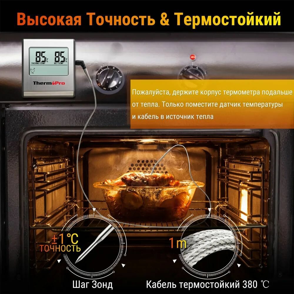 Купить Кулинарный Термометр ThermoPro TP16 С Датчиком Мяса И Таймером Для Духовки Барбекю -hj с доставкой по всей России.