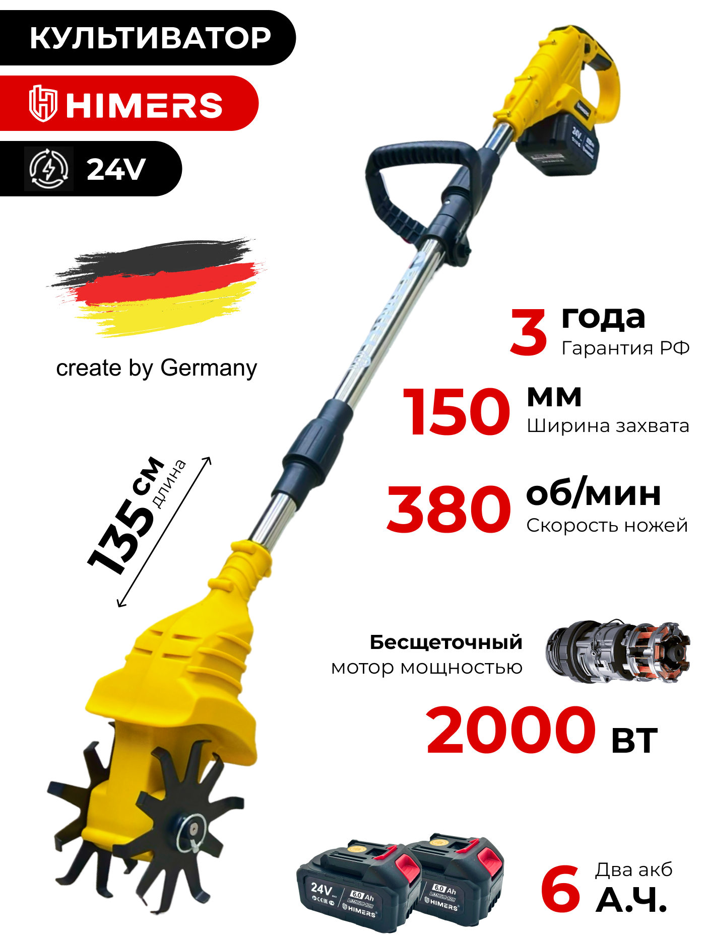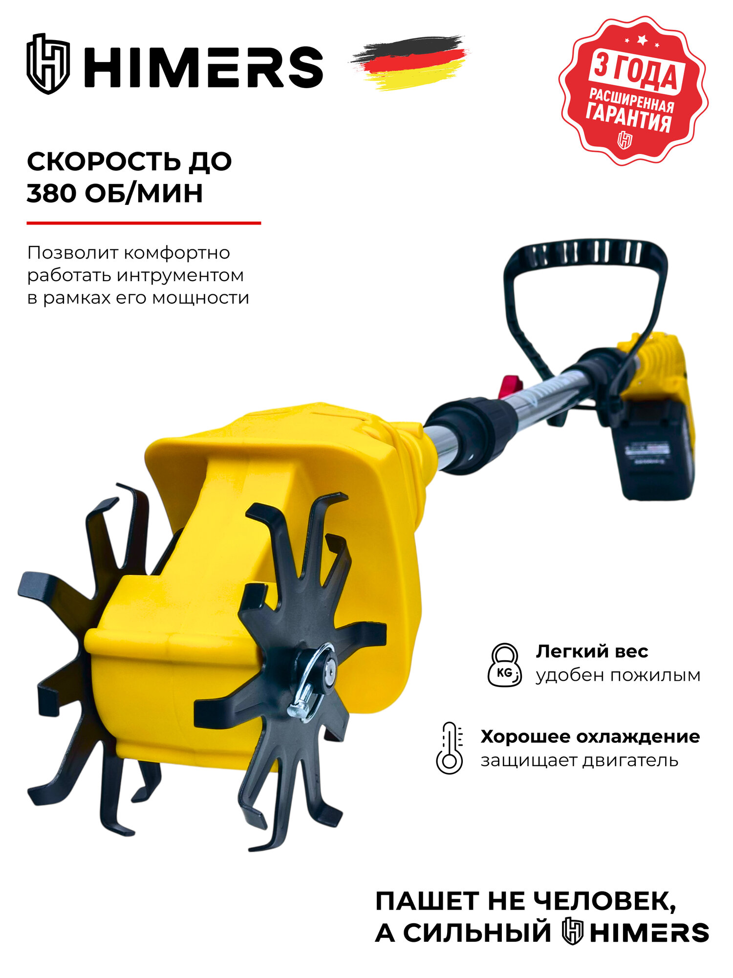 Культиватор аккумуляторный HIMERS DKV2000Y, 24V, 2 АКБ по 6 А. ч, 2000ВТ, 150мм, 380 об/мин: сравнение цен, характеристики, фото, актуальное наличие и цены.