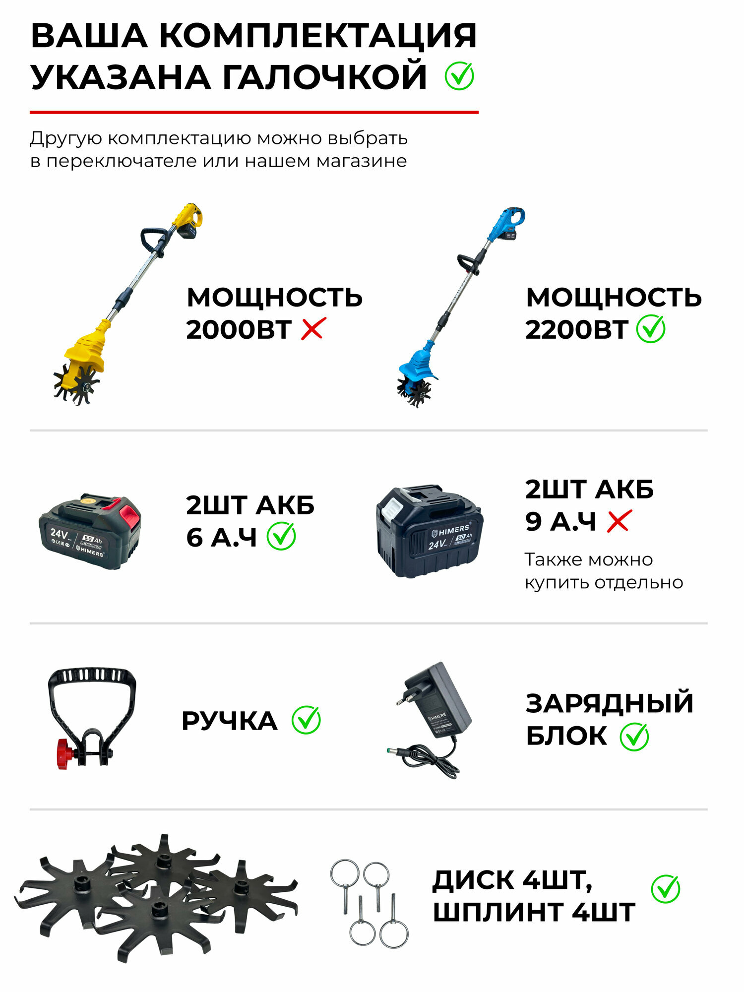 | Подробная комплектация | ОСНОВНАЯ КОМПЛЕКТАЦИЯ: * Тушка культиватора * 2 аккумулятора * Зарядное устройство * Ссылка и QR-код на электронное руководство по использованию и гарантийное обслуживание ДОПОЛНИТЕЛЬНАЯ КОМПЛЕКТАЦИЯ: * Коробка транспортировочная * 2 ножа + крепежные шплинты * Упорная крукять КОМПЛЕКТАЦИЯ И ВНЕШНИЙ ВИД МОЖЕТ НЕЗНАЧИТЕЛЬНО ОТЛИЧАТЬСЯ! |