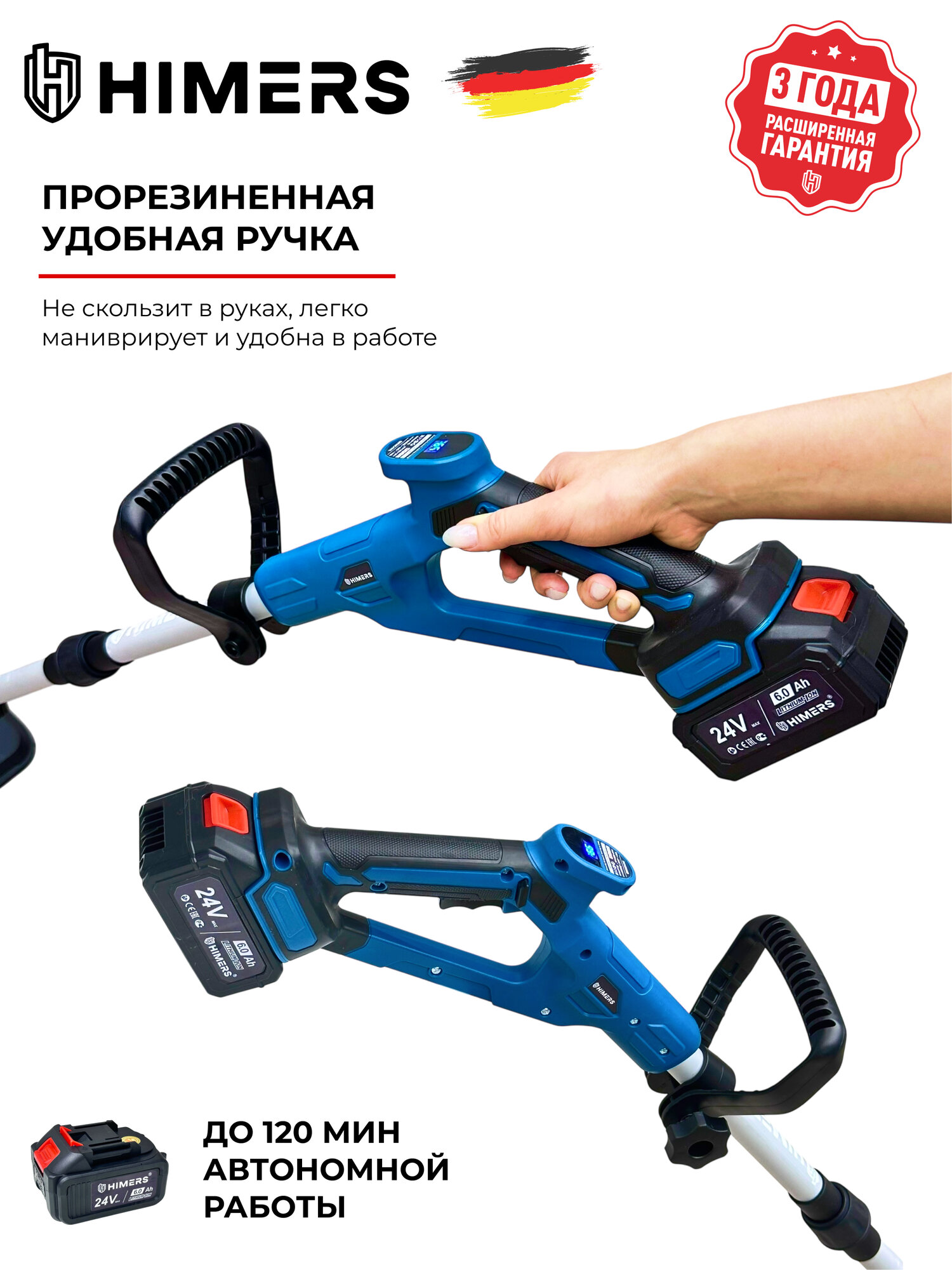 Культиватор аккумуляторный HIMERS DKV2800B, 24V, 2 АКБ по 6 А. ч, 2800ВТ, 270мм, 420 об/мин: сравнение цен, характеристики, фото, актуальное наличие и цены.