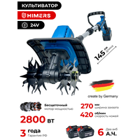 Культиватор аккумуляторный HIMERS DKV2800B, 24V, 2 АКБ по 6 А. ч, 2800ВТ, 270мм, 420 об/мин
