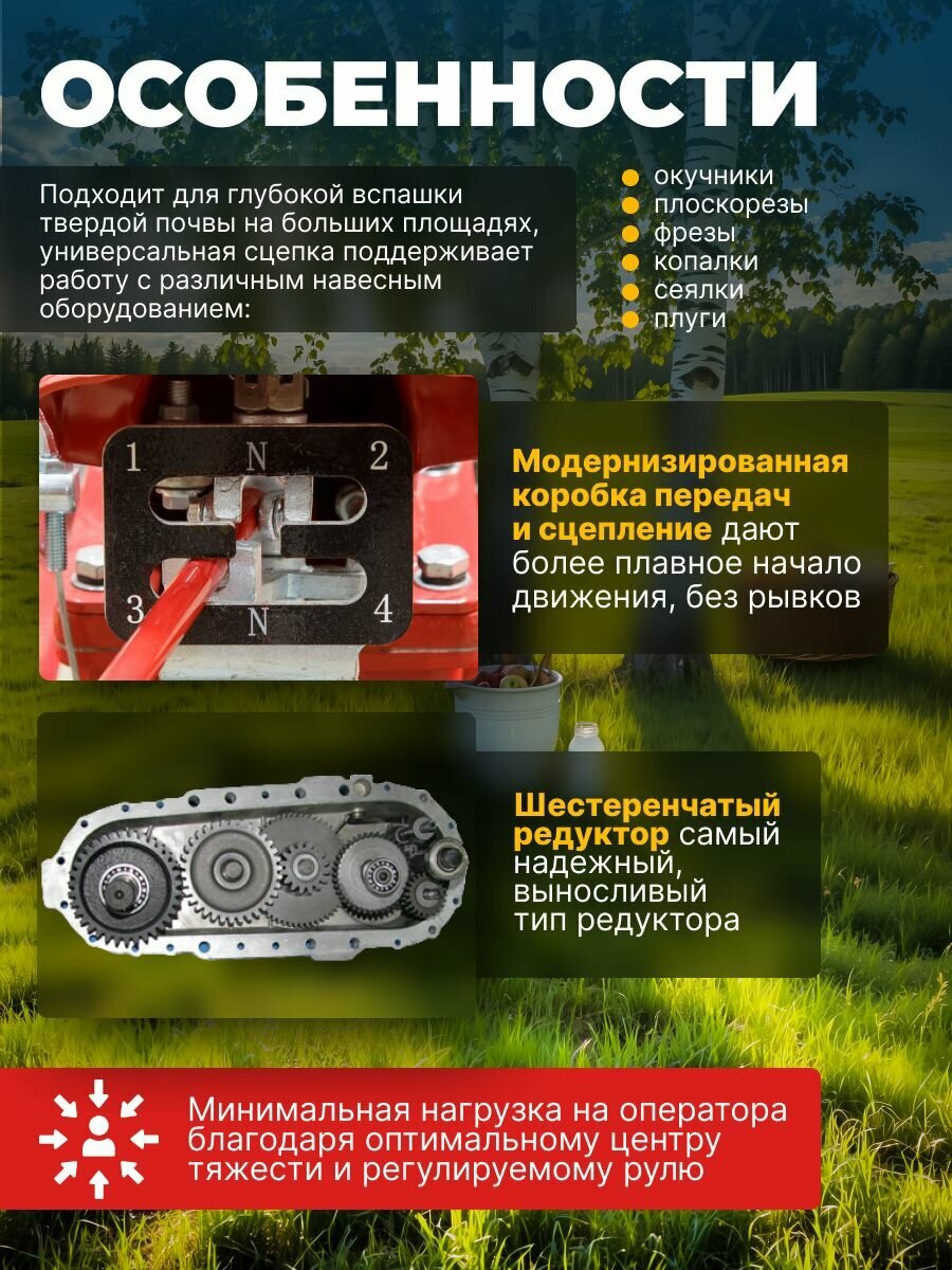 | Комплект поставки | Культиватор бензиновый, Колесо 6,50-12 - 2 шт., Втулки для колес, Фрезы, Защитные щитки, Сошник, Кронштейн сошника, Набор инструментов для монтажа, Набор крепежных изделий, инструкция. |
