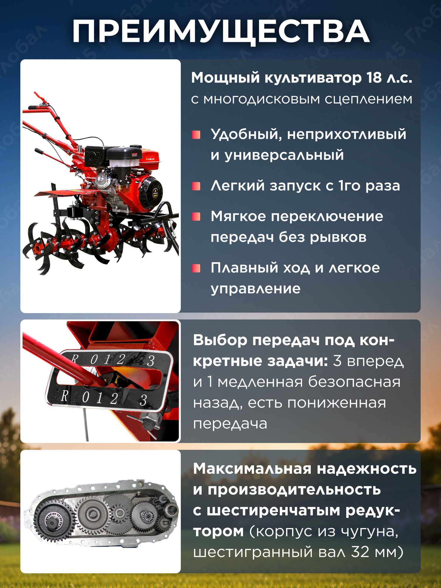 | оснастка | окучник, сошник, сцепка, фрезы |