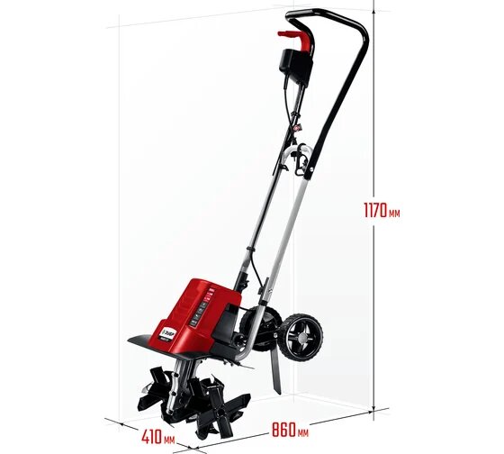 | Комплект поставки | Культиватор - 1 шт. Сошник - 1 шт Транспортировочное колесо - 1 шт. Нож фрезы - 24 шт. Ось фрезы - 4 шт. Крепеж для сборки фрез - 1 шт. Хомут крепления тросов - 2 шт. Диски защиты растений - 2 шт. Комплект ключей - 1 шт. Руководство по эксплуатации - 1 шт. |