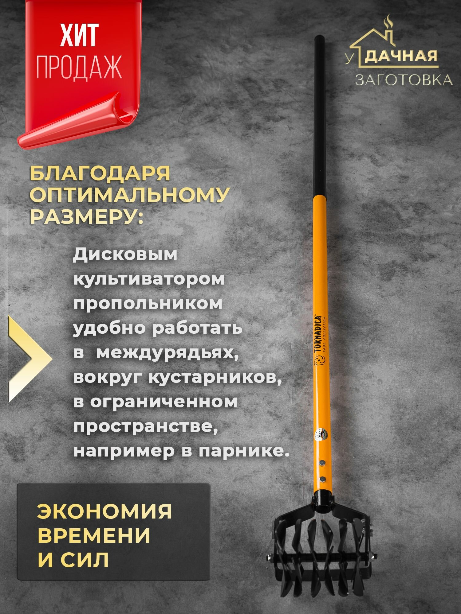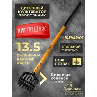 Культиватор пропольник дисковый "Tornadica" подготавливает почву для рыхления грядок и посева. Инструмент имеет шесть звездообразных дисков, которые позволяют лучше перемалывать почву, что очень важно для посева.