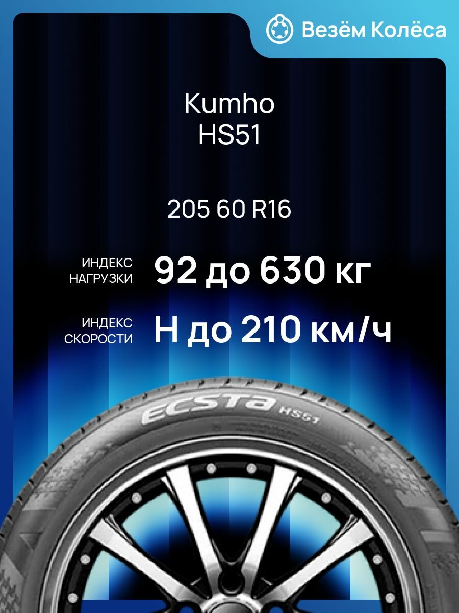 Шина летняя KUMHO HS51 205/60 R16 92H: сравнение цен, характеристики, фото, актуальное наличие и цены.