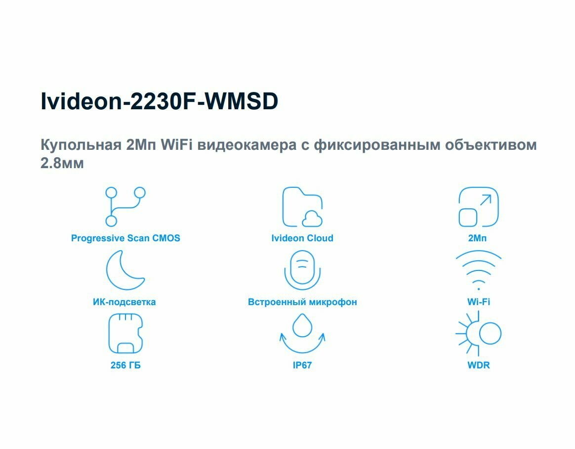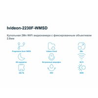 Купольная беспроводная WiFi 2-мегапиксельная IP-камера с микрофоном для квартиры, офиса, магазина и других применений, разрешение до 1920x1080, ночная ИК-подсветка 30 м, детектор движения, запись на карту памяти microSD, подключение к «облаку» iVideon. Работает с Алисой.