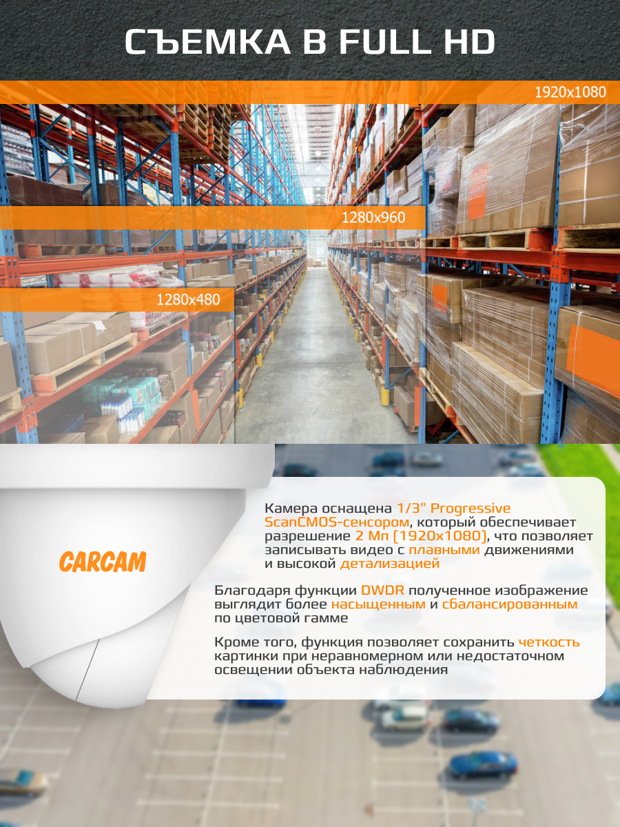 Купольная Full HD IP-камера CARCAM 2MP Dome IP Camera 2071M, 2 Мп, ИК-подсветка 25 м