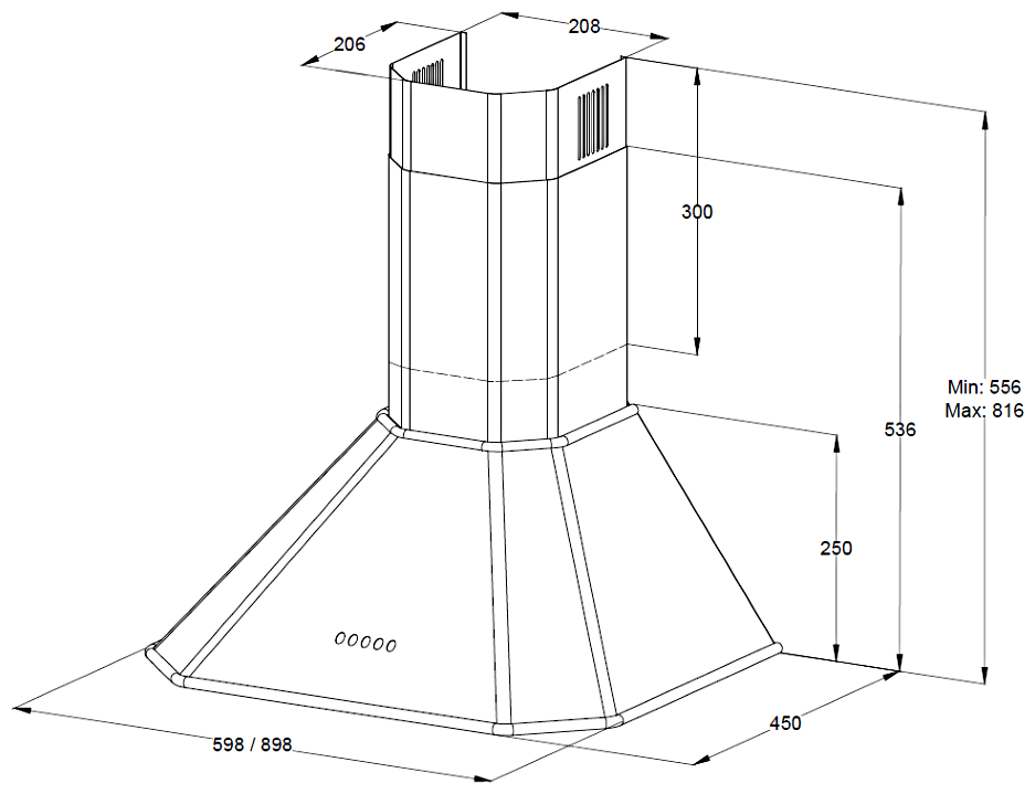 Габариты (ВхШхГ) (мм): 556-816x898x450